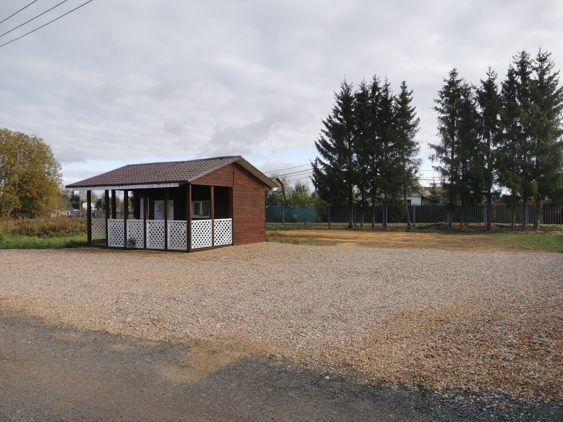 Территория огорожена забором, въездная группа оборудована автоматическими воротами. Гостевая парковочная зона на несколько автомобилей, детская площадка и домик коменданта посёлка.