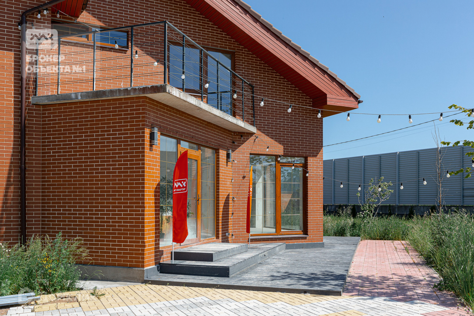 Подъезд к дому и часть двора для парковки выложены плиткой.