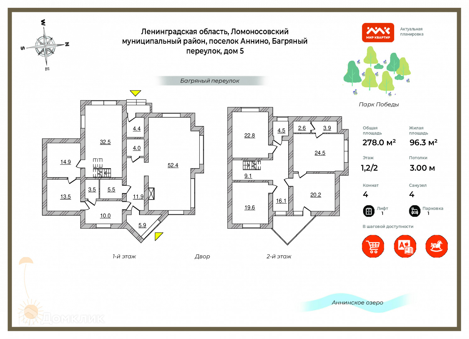 - рядом парк, Аннинское озеро, фитнес-клуб, бассейн, медпункт, стоматология.