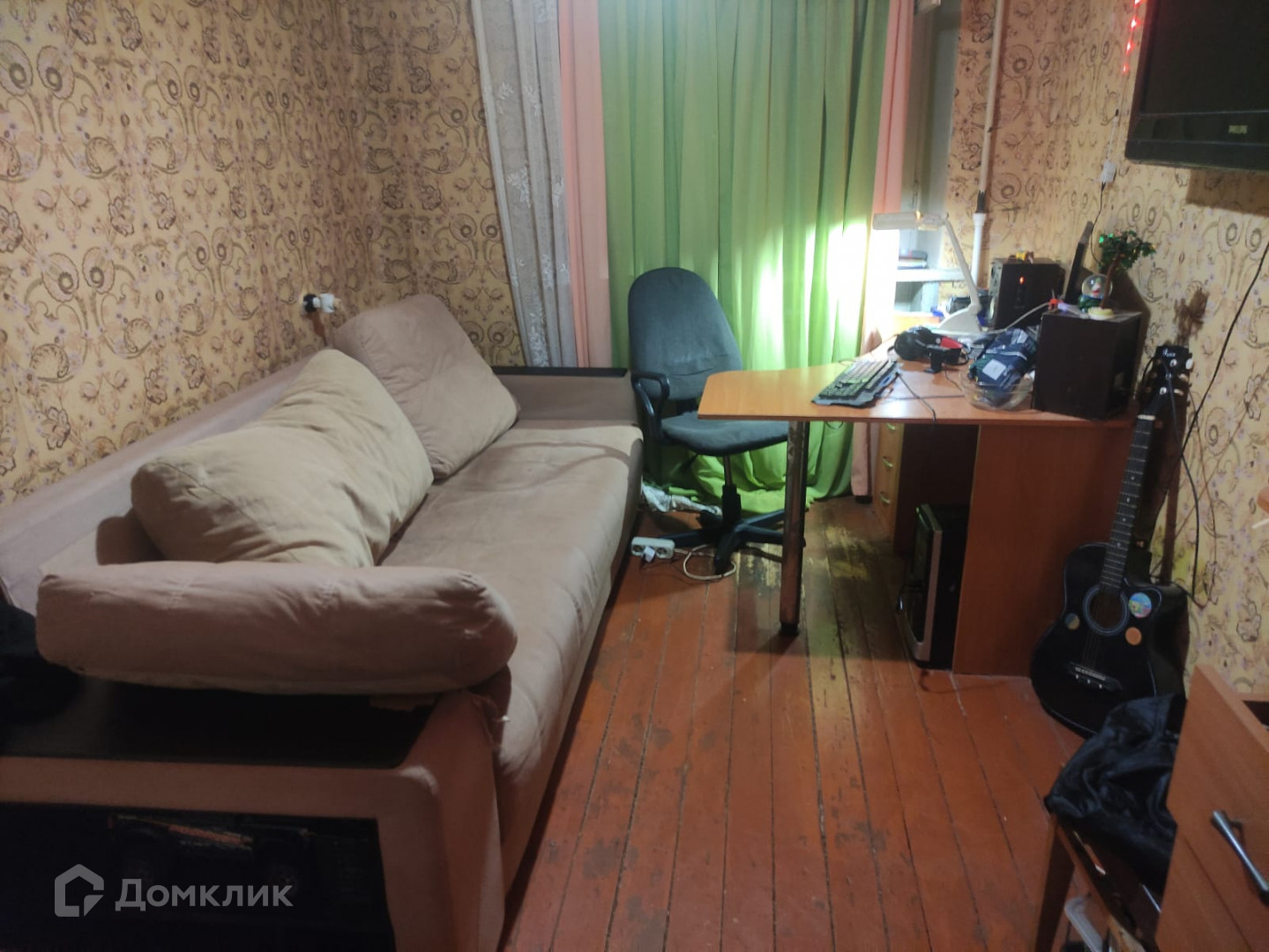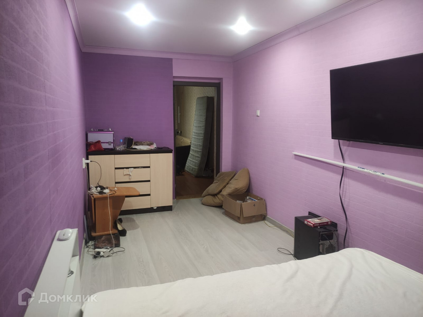 -В одной комнате сделан полностью ремонт, на пол положен ламинат, установлен натяжной потолок,