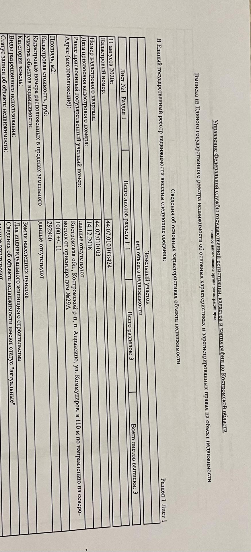 Продаю земельный участок с кадастровым номером 44:07:010103:424. Категория: земли населенных пунктов. Вид разрешенного использования: для индивидуального жилищного строительства. Электричество на границе участка. Газ и водопровод рядом, в 10 метрах. Участок ровный, сухой, прямоугольной формы. Соседи только слева и справа. Поселок развит, имеет всю необходимую инфраструктуру. В поселке в этом году планируют построить новую школу, до отделения почты, магазинов и остановки общественного транспорта можно добраться пешком. Рядом парк активного отдыха Креатив. В 15 минутах на машине Шуваловское озеро, в 20 минутах Костромское водохранилище. До центра города 7 минут. Я собственник. НЕБОЛЬШОЙ торг.