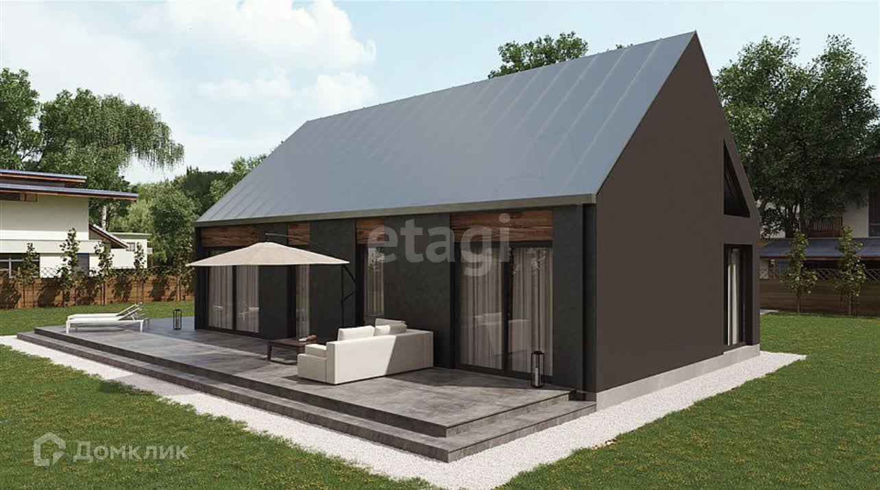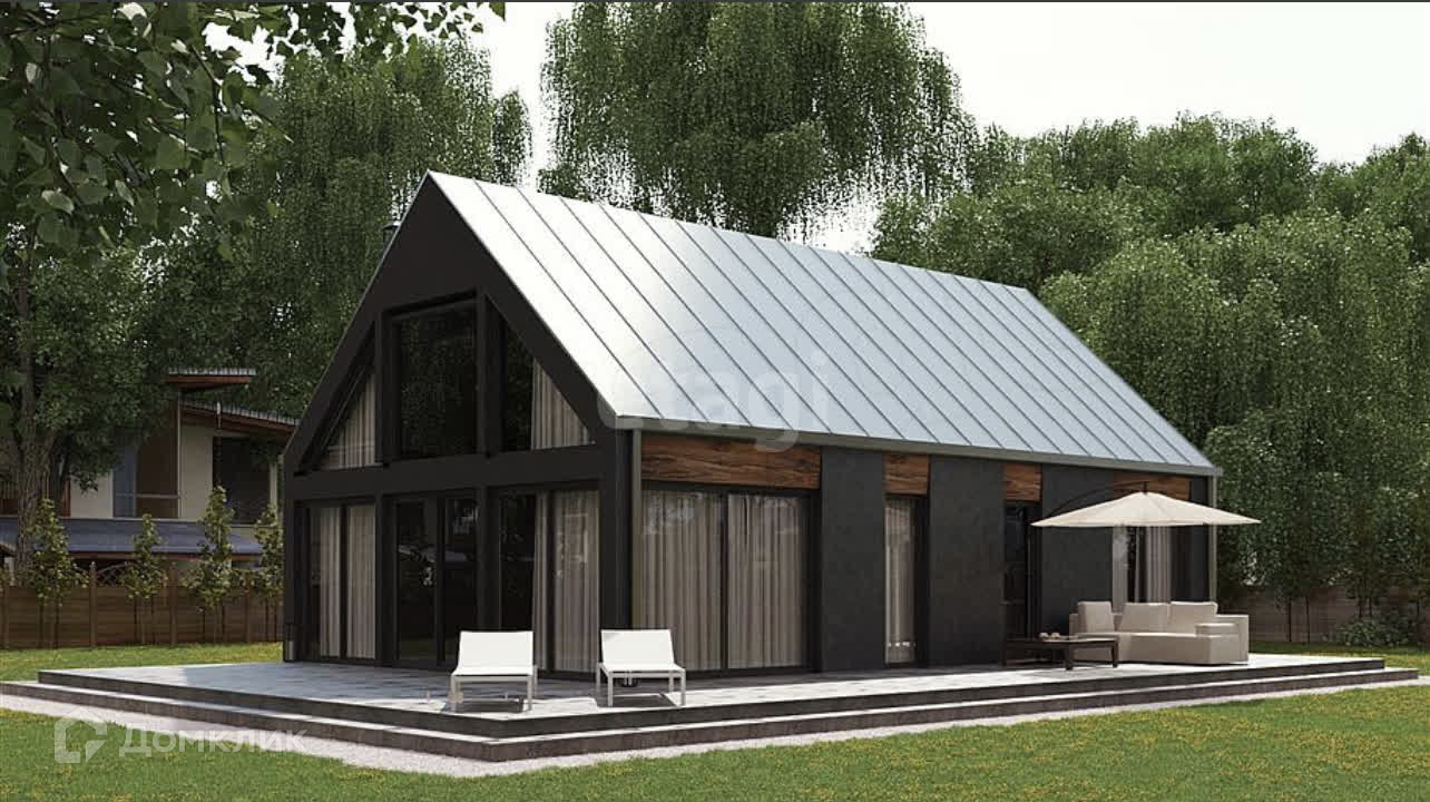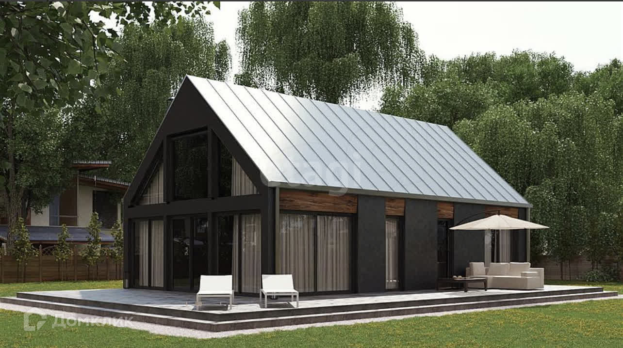 -Панорамные окна придают дому современный вид.