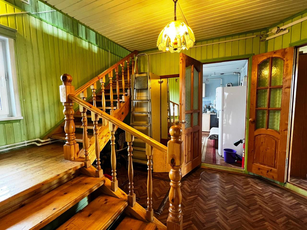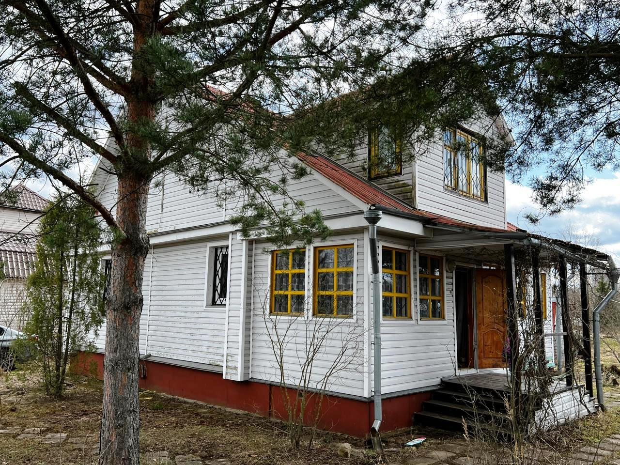 ДОМ: Капитальное двухэтажное жилое строение на ленточном фундаменте. Общая площадь 117 кв.м.  Стены первого этажа из бревна, второго из каркасно-щитовых материалов. Наружная отделка выполнена с использованием сайдинга. В окнах установлены ПВХ-профили, входная дверь металлическая.