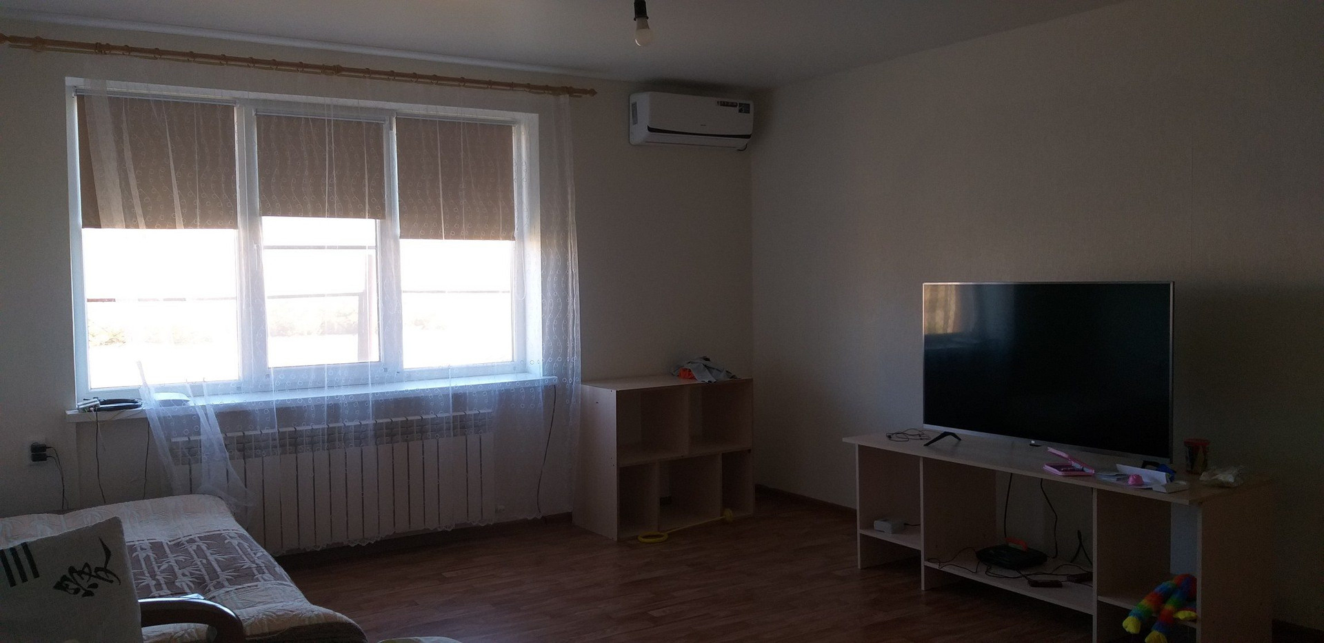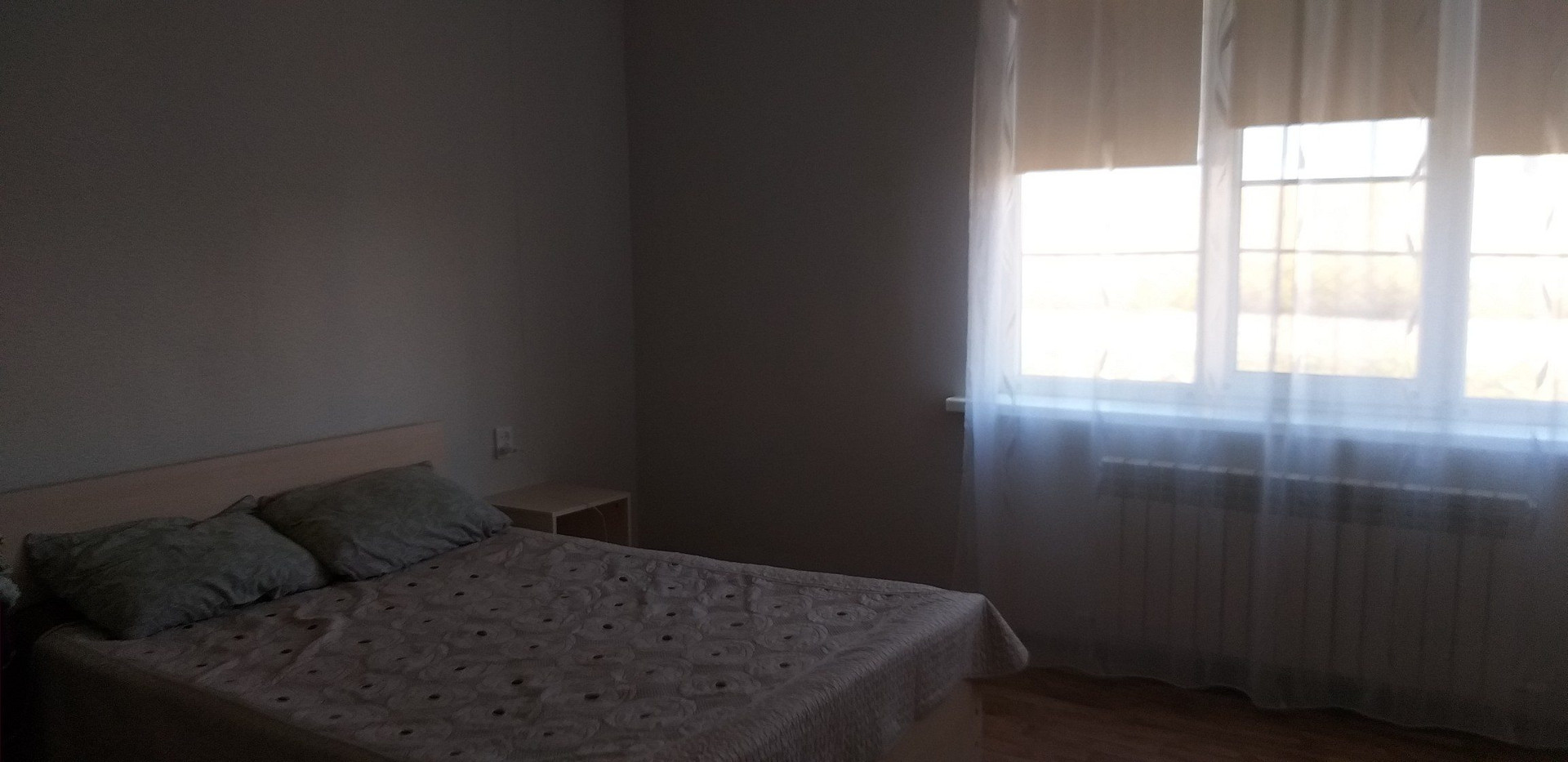 В доме 2 спальни (17,5 и 18 кв.м), зал (24,7 кв.м), кухня, сан.узел совмещен (душевая выложена из плитки), коридор, прихожая. Везде пластиковые окна, интернет. Свет, газ, отопление - 2х контурный котел, радиаторы (в сан.узле теплый пол), водопровод центральный, септик.