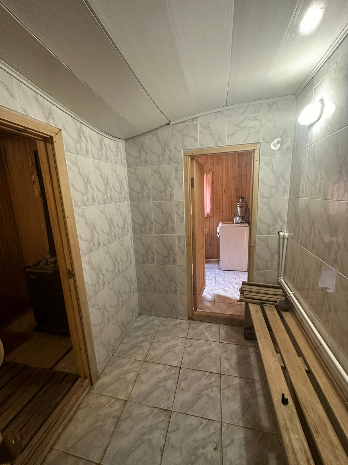 По всему дому натяжные потолки, на нижнем этаже двери, окна заменены в 2023 году.