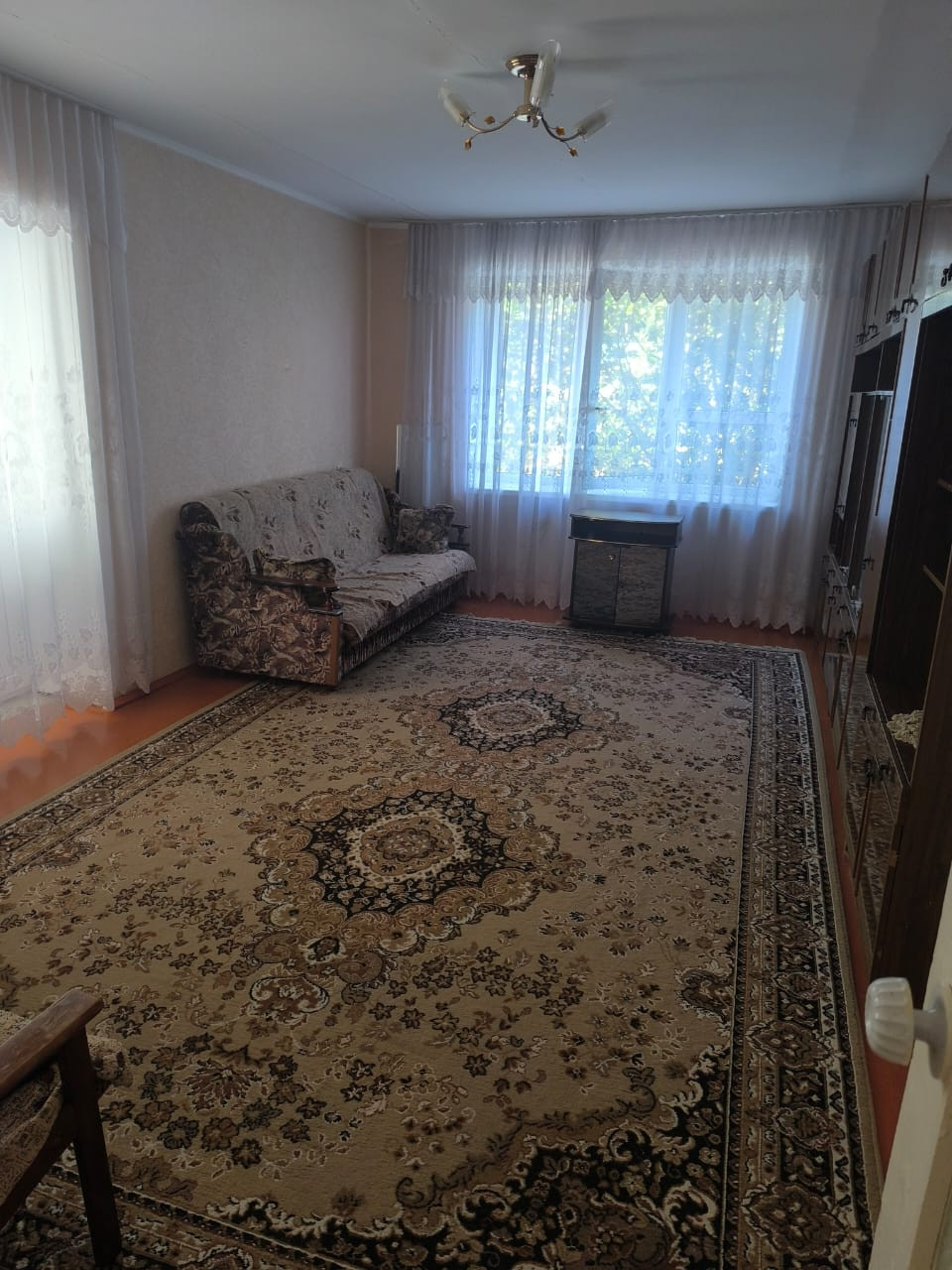 Продаётся уютная трёхкомнатная квартира общей площадью 79.4 квадратных метров, расположенная на первом этаже двухэтажного кирпичного дома, построенного в 1985 году. Дом находится в живописном районе посёлка Аршан, по адресу улица Космонавтов, 22.