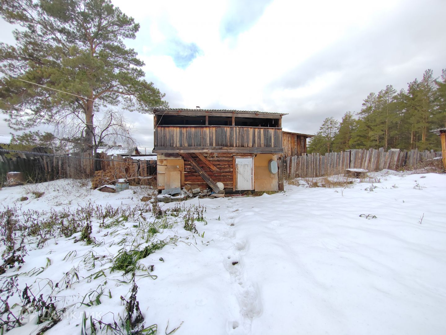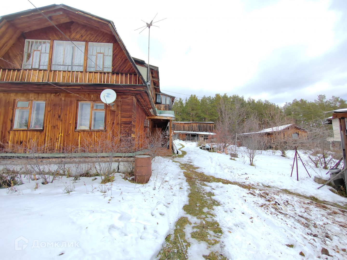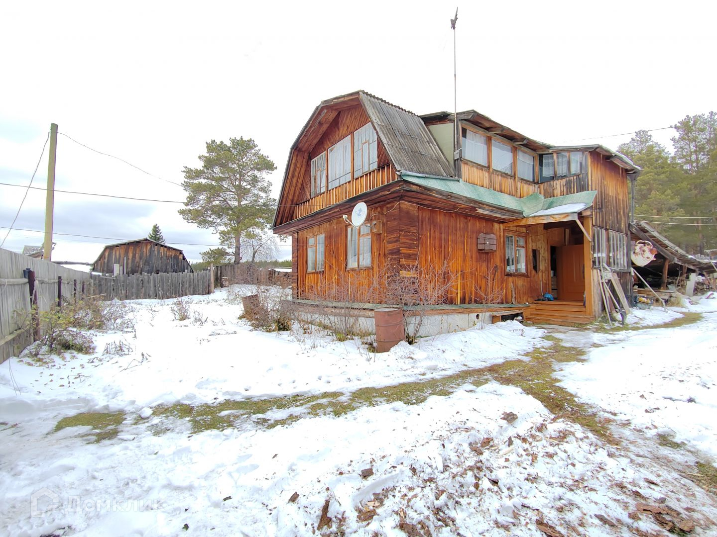 Дом двухэтажный бревенчатый.