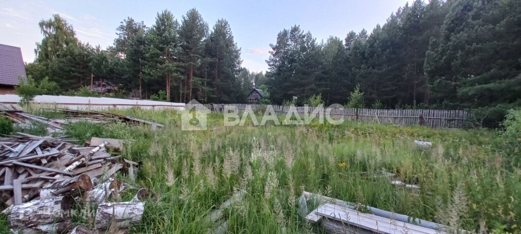 Дом частично восстановлен, есть коммуникации. Участок правильной прямоугольной формы, огорожен деревянным забором.