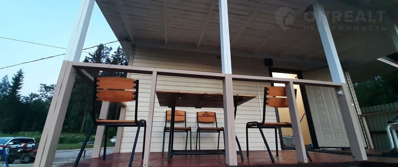 Дом рассчитан на проживание 6 гостей. Две спальни зеркально расположены и оборудованы всем необходимым. В каждой двуспальная кровать 140×205 с матрасом Аскона. В кухне-столовой диван со спальным местом 140×210 с пружинным блоком. К дому примыкает открытая веранда со столом с стульями.