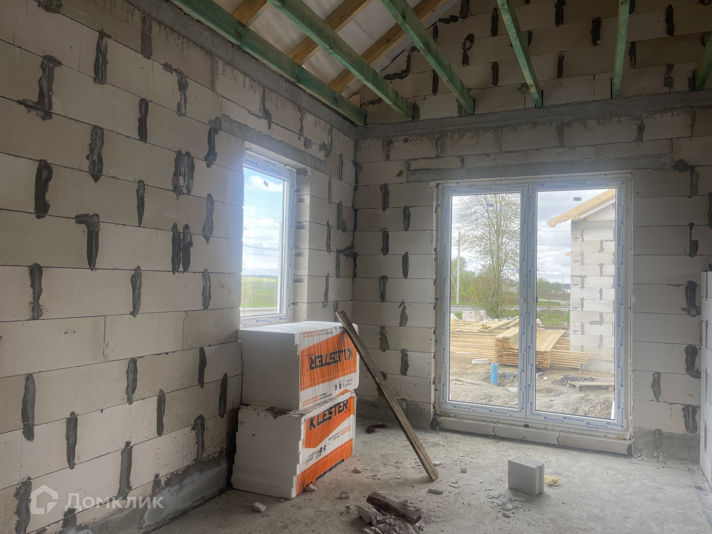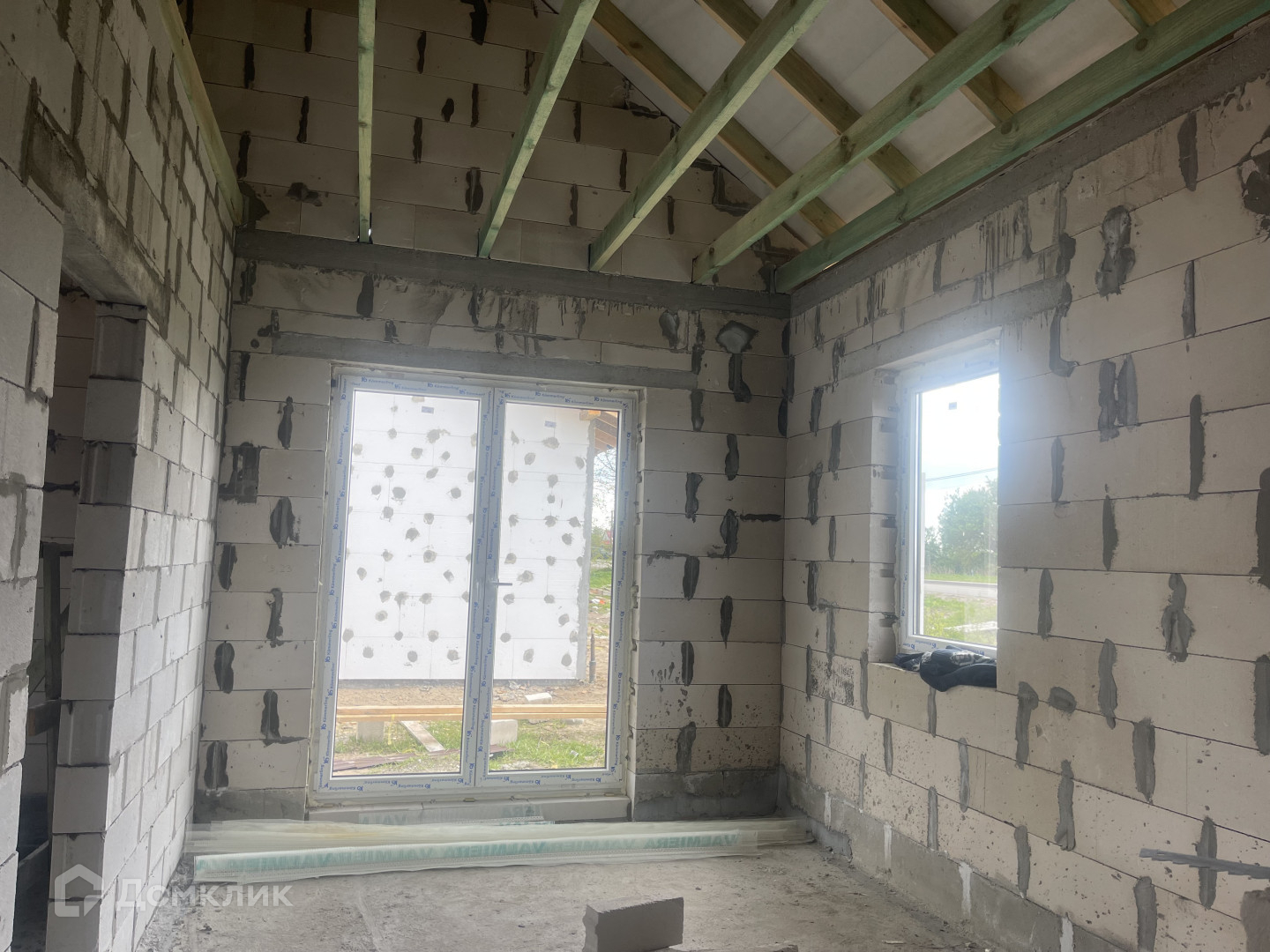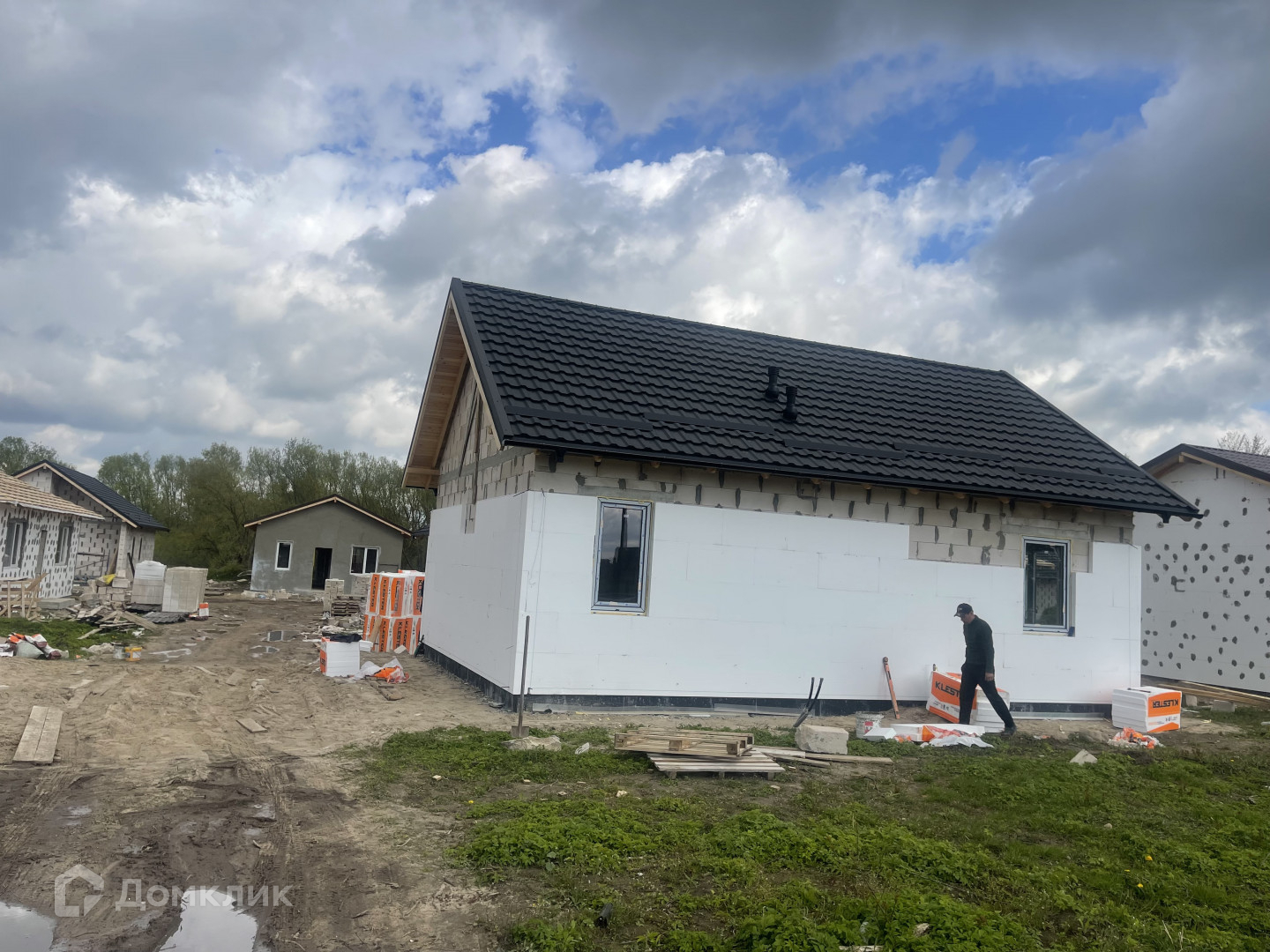 В доме сделаны теплые полы везде, кроме 2-х спален(там радиаторы). Разводка электричества.  Вода -скважина 80 кв. м., стяжка полов, стены оштукатурены,  Территориально есть парковка на две машины ,выложена плиткой.