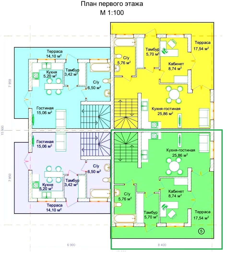 Блок-секция (2 этажа, "серый ключ") - 115 кв.м.