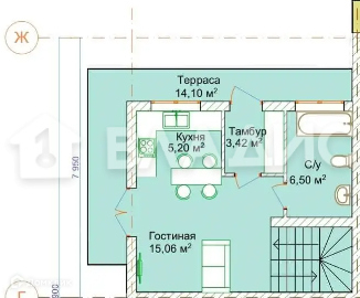 - тамбур: 3,42 м.кв.