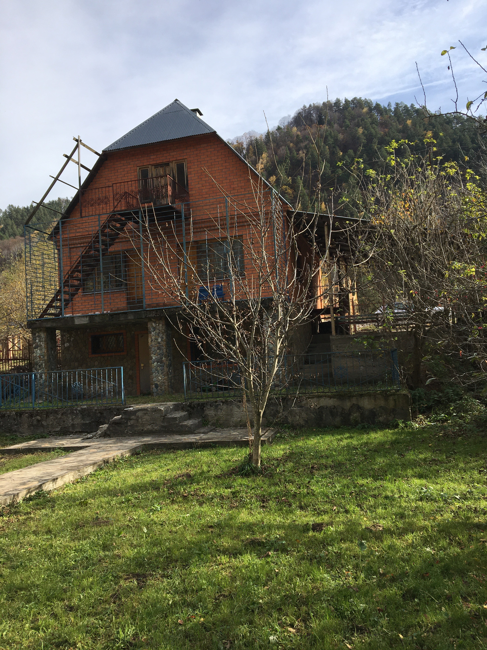 Жилой дом расположен в дачном  п. Азиатском на берегу реки Большая Лаба. По этому ущелью пройдет автодорога до Сочи (65 км)