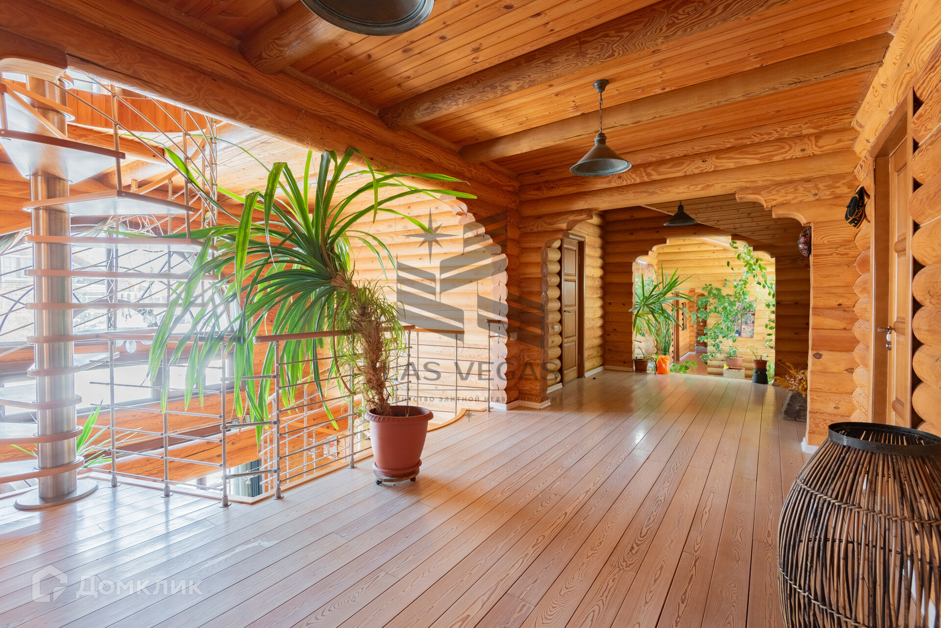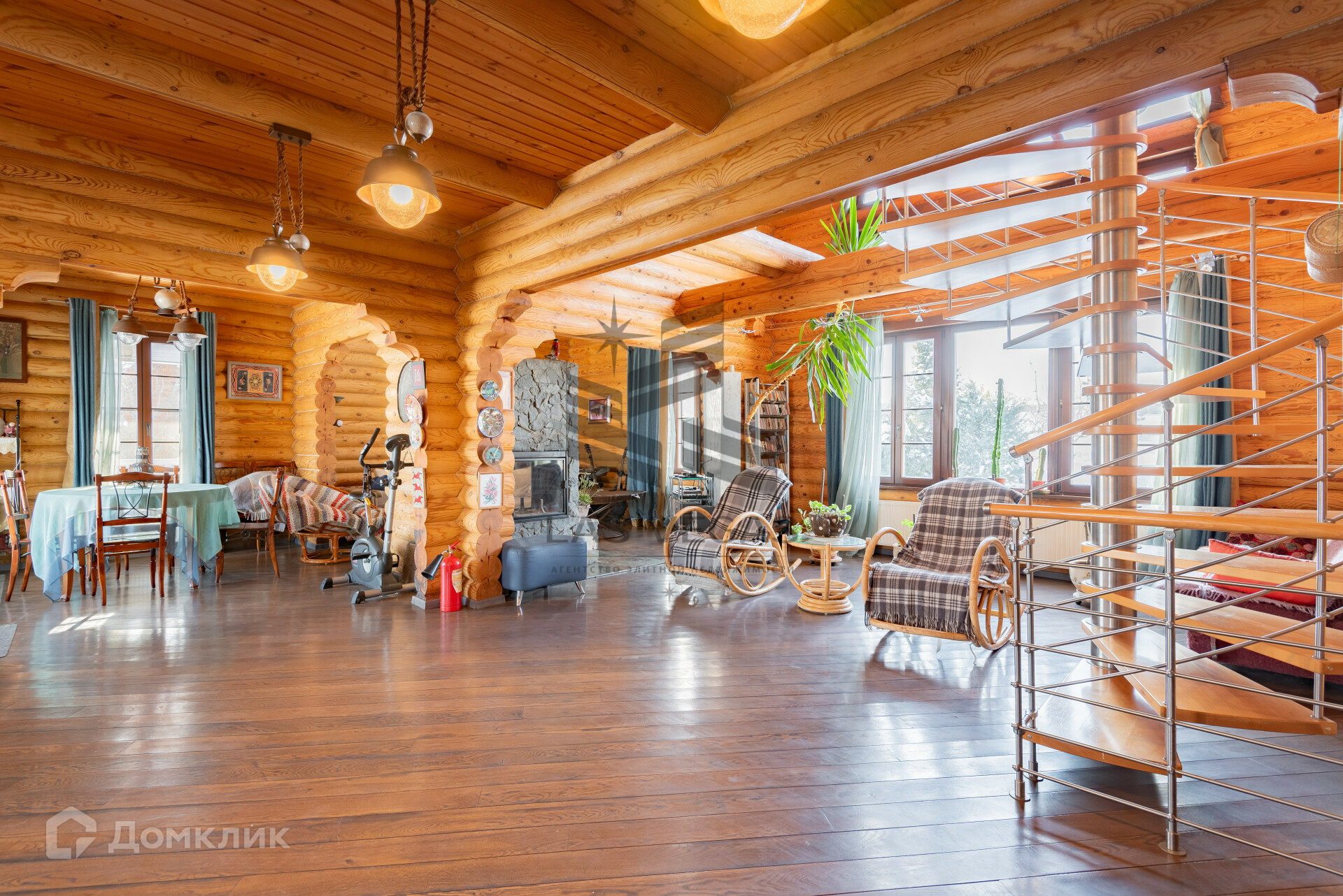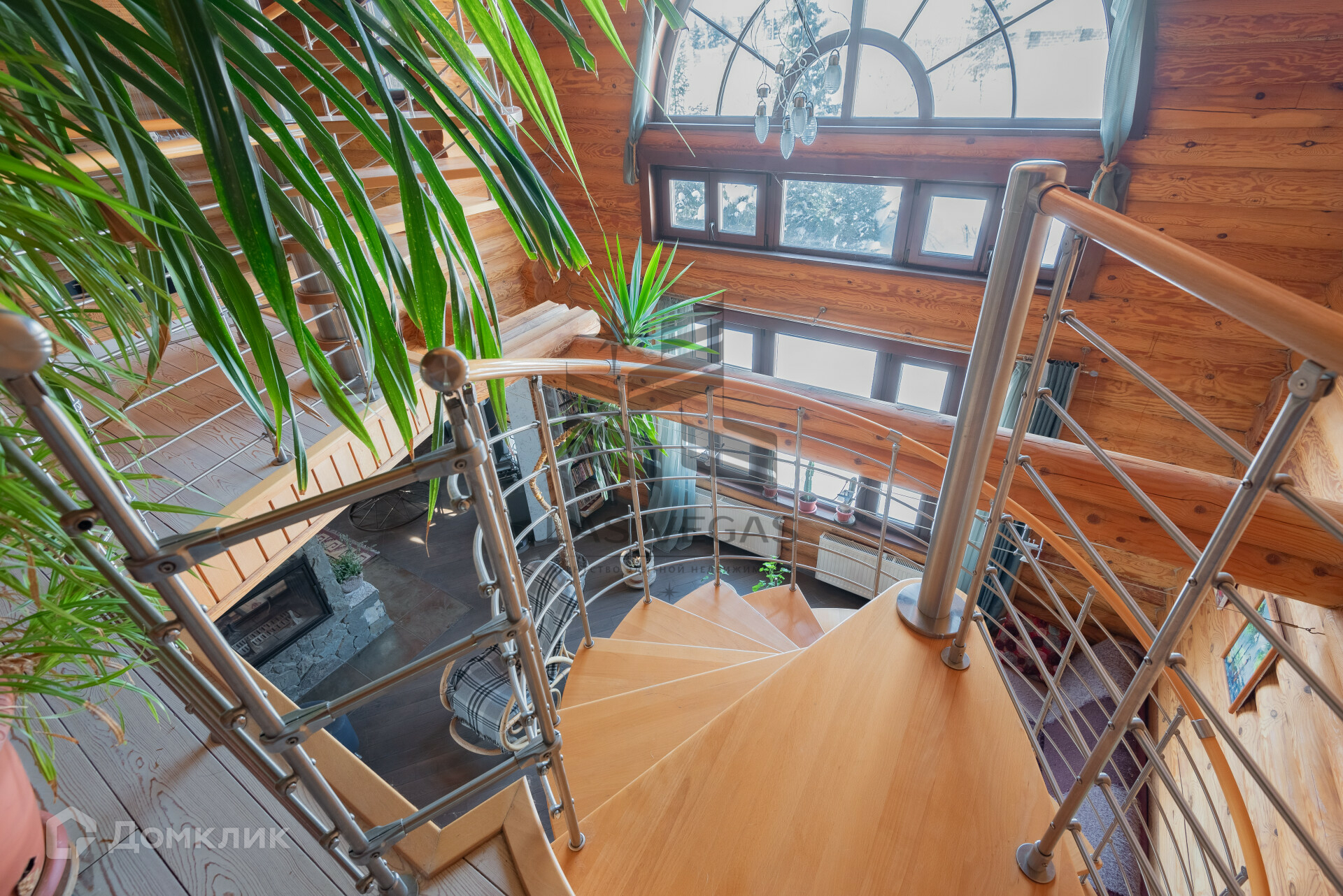 Подняться на второй этаж можно по двум лестницам, одна из них винтовая и ведет на все три этажа.