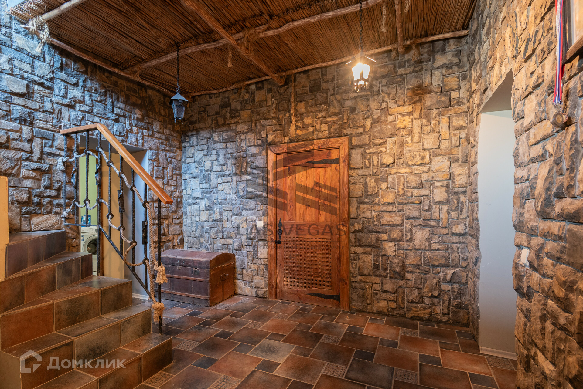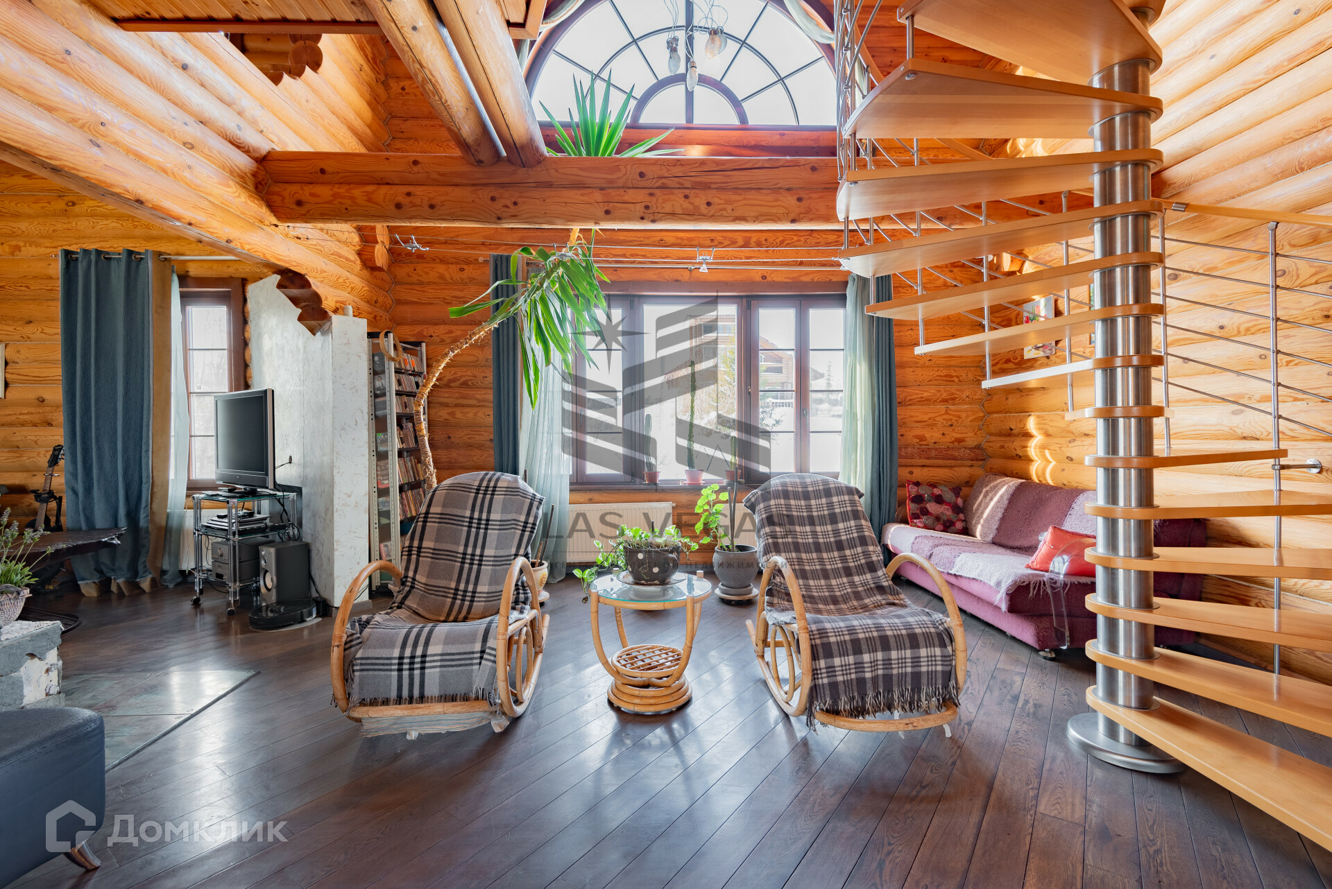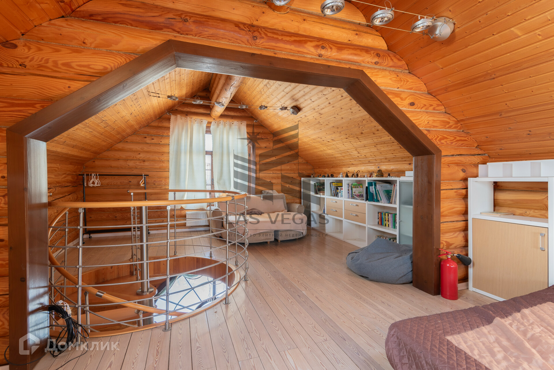 Подняться на второй этаж можно по двум лестницам, одна из них винтовая и ведет на все три этажа.