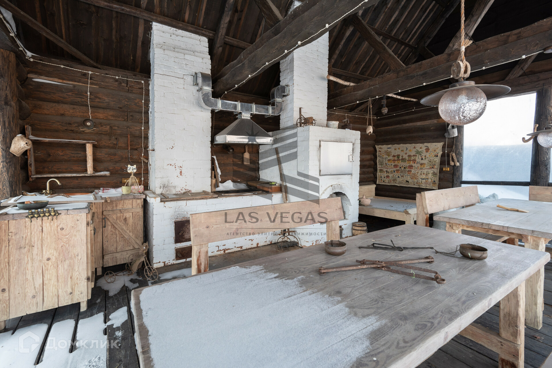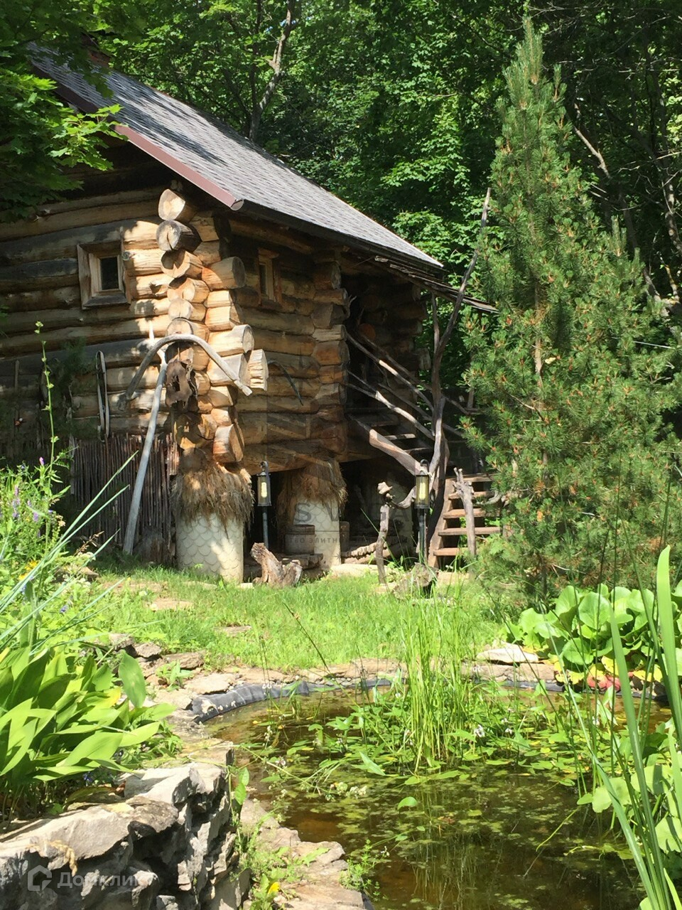 На территории есть летняя кухня, настоящая русская баня на дровах (на курьих ножках - эксклюзивный дизайн!), беседка, кострище.