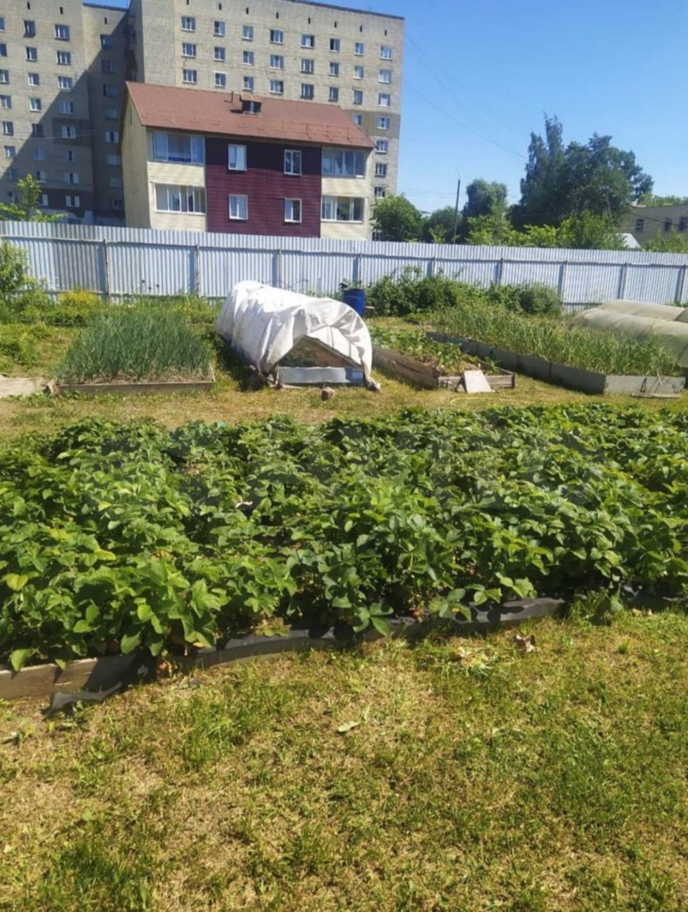 Также  имеется беседка, сарай для инструментов, теплица и насаждения.