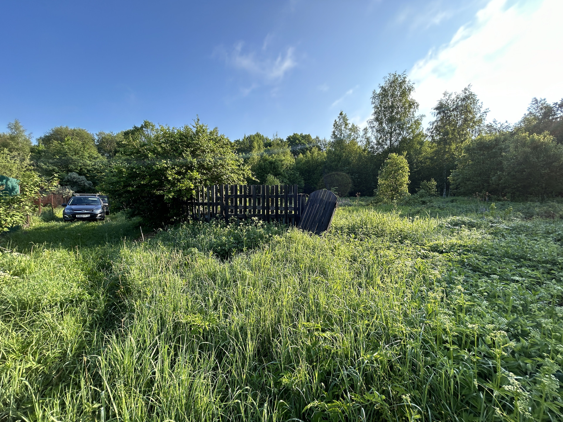 ОБЪЕКТ: Земельный участок, общей площадью 12 соток, ровный, сухой, не ухожен (зарос, давно не пользовались им), частично огорожен деревянным забором. Участок в собственности с 2020 года, собственник один. На участке расположены: недостроенная деревянная баня, хоз. блок и ленточный фундамент 7 на 7 метров. Целевые взносы составляют 2400 руб. в год. Участок отмежеван, границы установлены. Кадастровый номер земельного участка 33:01:001806:613. Участок крайний, граничит с лесным массивом.