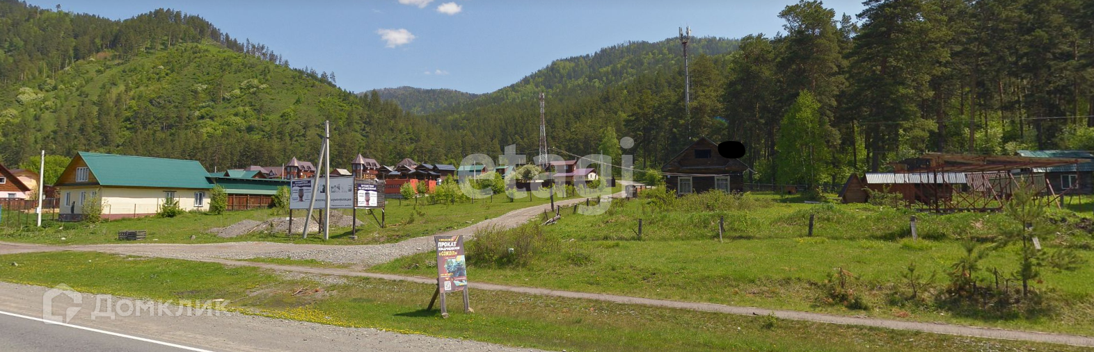 Участок расположен между Чуйским трактом и лесом.