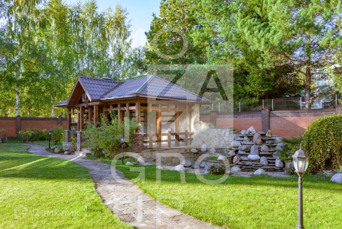 ID 541971. Барвиха. Дом 720 кв.м на участке 25 соток в поселке Барвиха. На участке проведены ландшафтные работы, выполнен ландшафтный дизайн, высажены кустарники и крупномеры, вымощены дорожки, установлено освещение и видеонаблюдение по периметру участка. Отдельно расположены беседка, гараж на 2 машиноместа и парковка на 4 машиноместа.