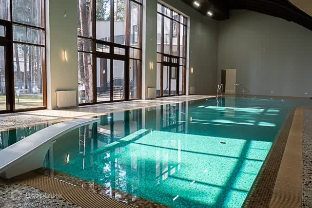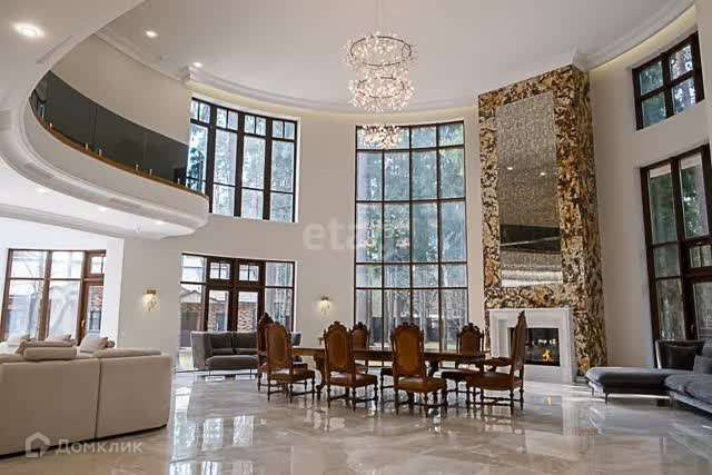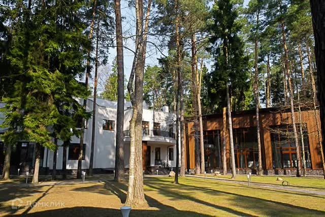Вашему вниманию представлен участок 60 соток с более чем 80 столетними соснами, не считая дубов и прочих деревьев. Дом снаружи кажется двухэтажным, хотя лифт из подвала на крышу поднимается на 4 уровня. Общая площадь трех строений на участке – 2400 м2 , из которых главный дом составляет 1700 м2 с бассейном 17 метров длиной и оборудованной по последнему слову техники сауной, а также два дополнительных дома с гаражом на 3 машины и четырьмя квартирами для обслуживающего персонала и охраны.