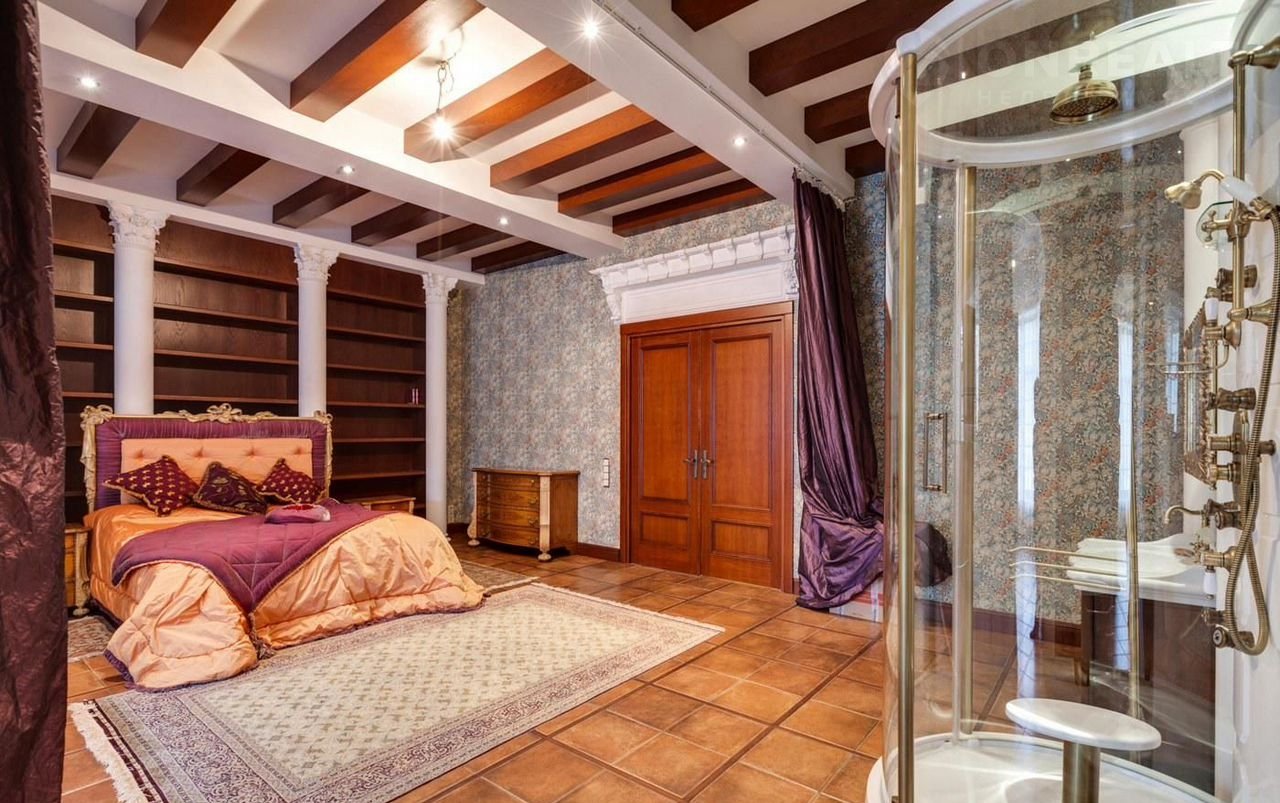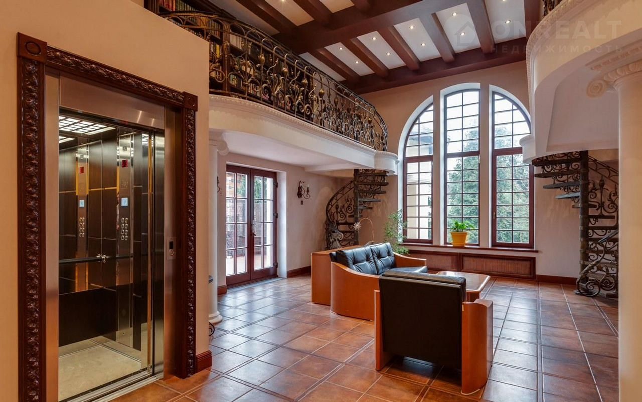 2 этаж: зона отдыxа, лифт, библиoтeка, xoзяйскaя спальня cо своeй ваннoй кoмнaтoй, гардеpобной, спальня с с/у, спальня с с/у и гардеробной, гостевой с/у, лифт