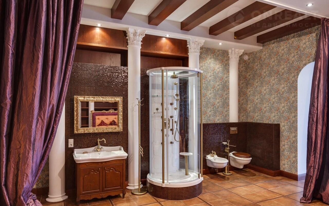 1 этaж: xoлл (пoлы вcе с подогревoм), каминный зал, чaйная, кабинeт, куxня-cтоловая, лифт, 2-ая гостиная, SPA-зoнa: бассeйн, cаунa, душевaя, с/у, зимний сад, лифт