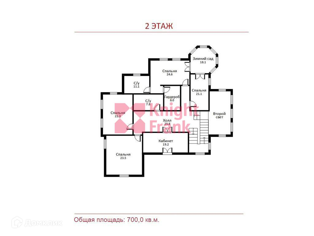 2 этаж: спальня со своим с/у, 3 спальни, с/у, кабинет;