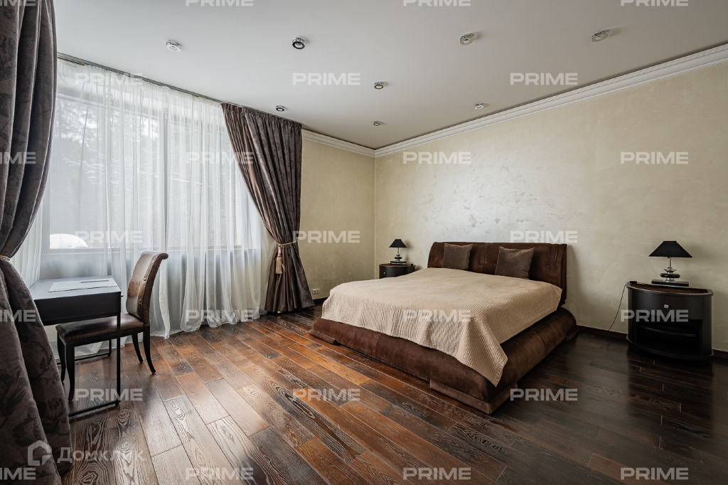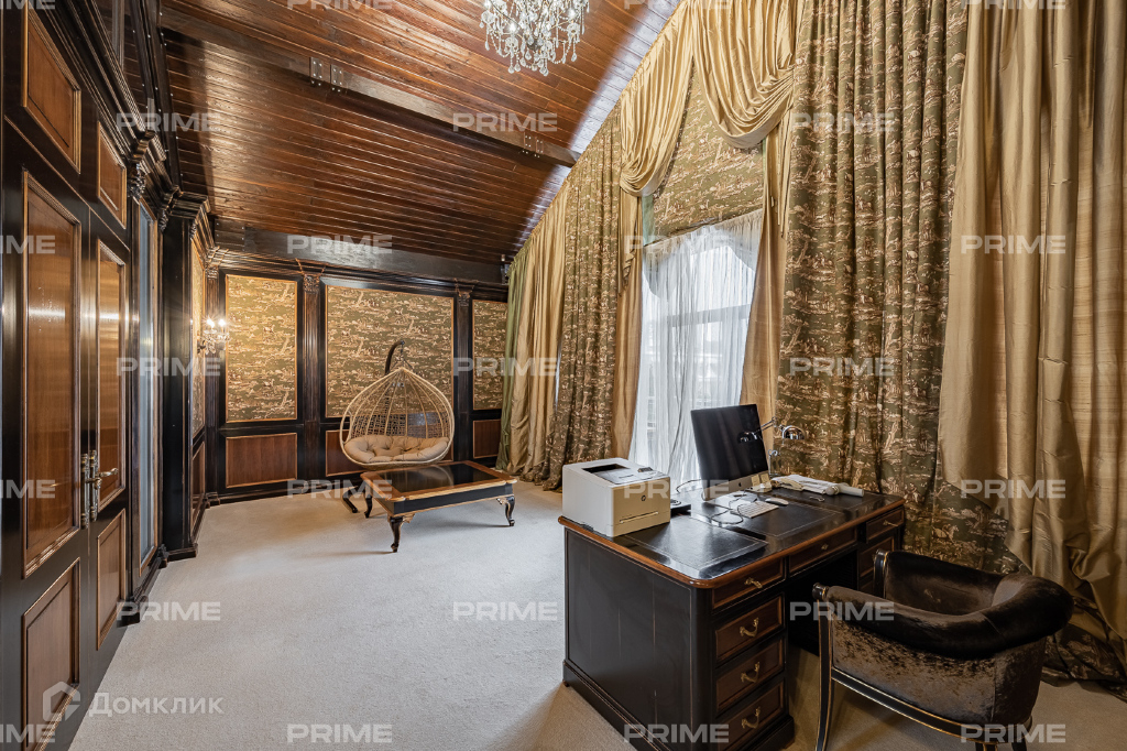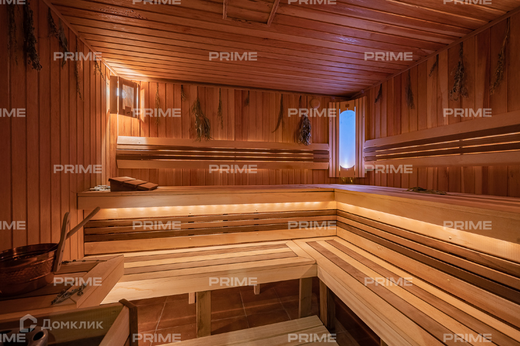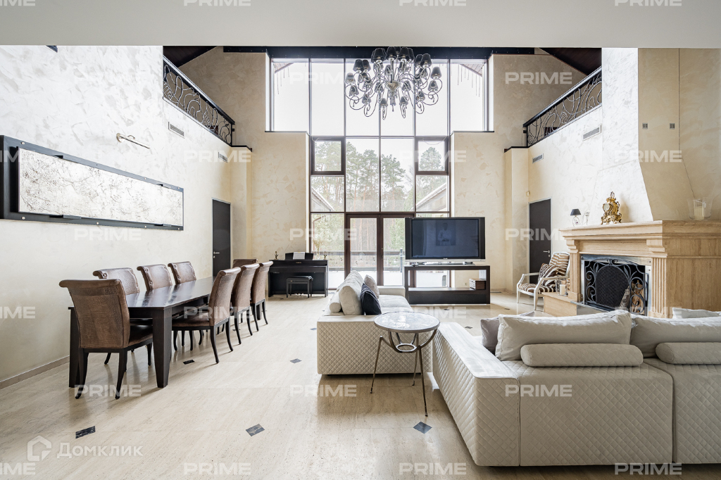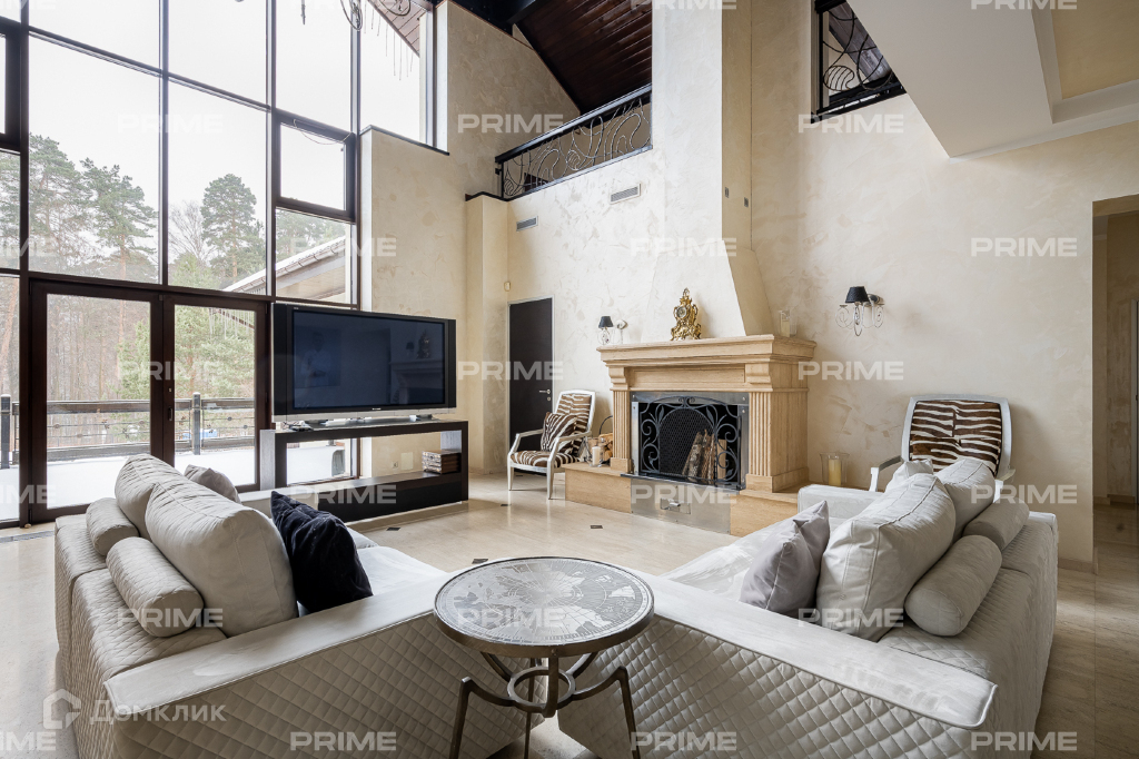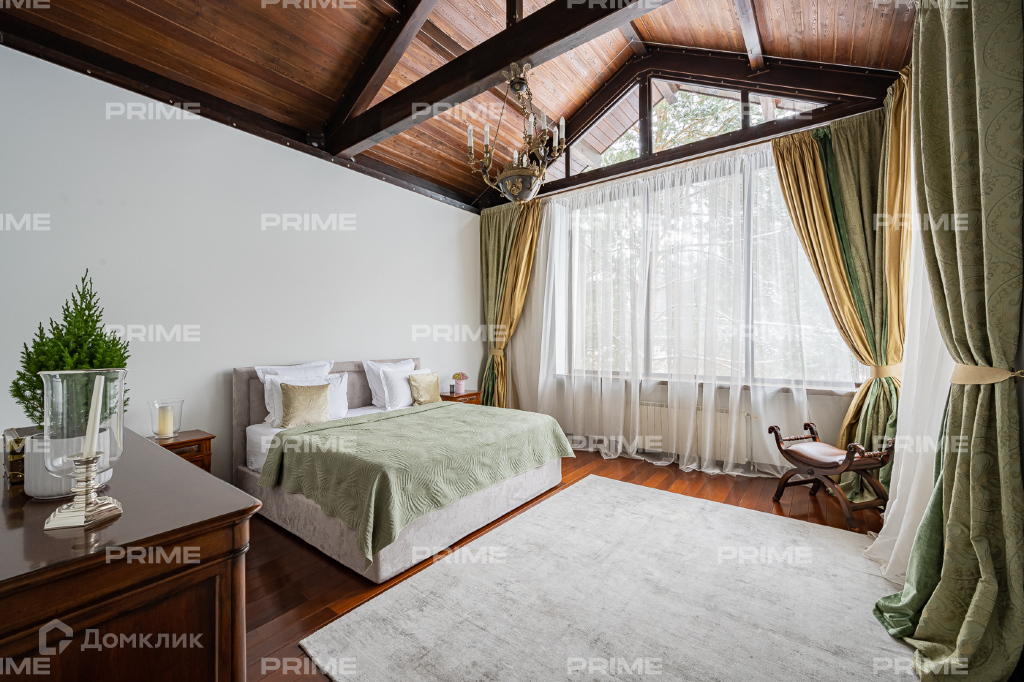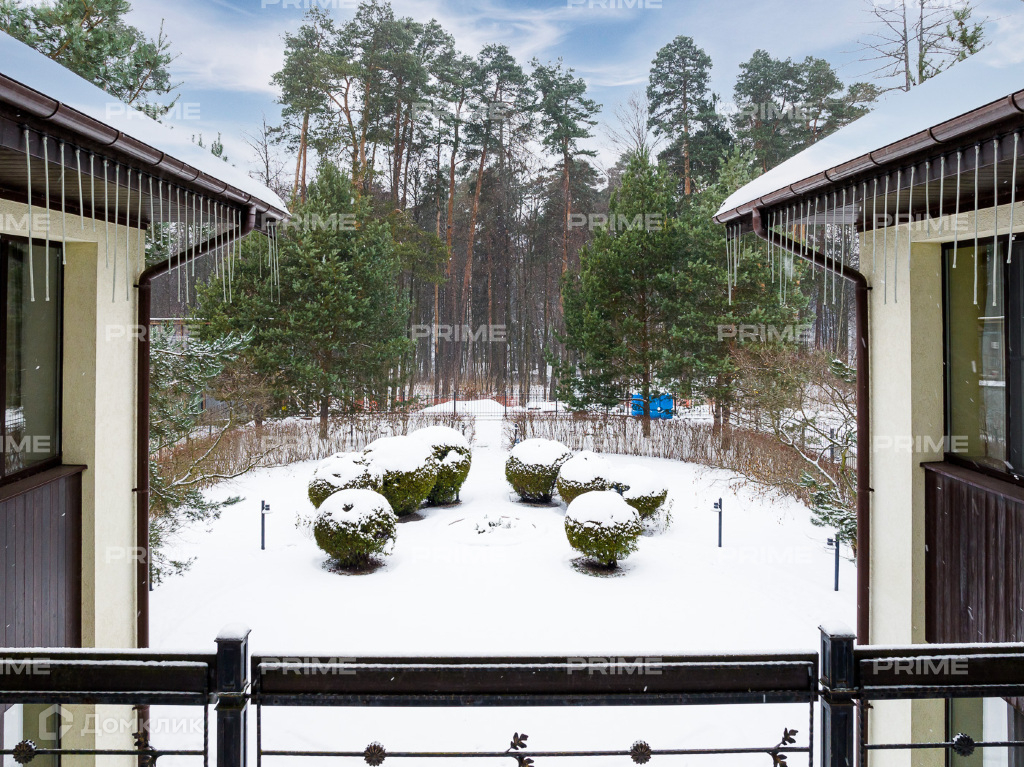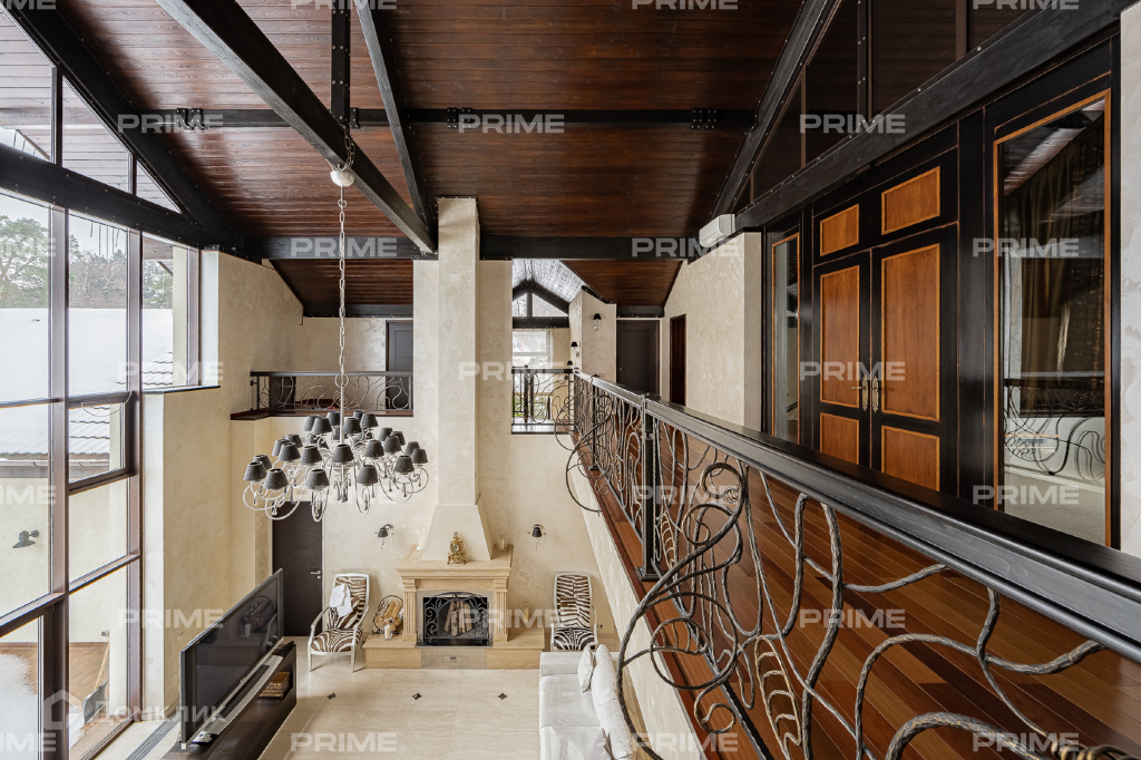 Внутренняя дизайнерская отделка выполнена с использованием премиальных и натуральных материалов. Пол первого выложен дубовым паркетом светло-серых оттенков в гостинной и в темных тонах в кухне-столовой. Во всех комнатах установлена качественная мебель европейских производителей. Благодаря панорамному остеклению и второму свету пространства наполнены естественным светом, даже в пасмурную погоду. Внутренний двор огорожен, тут вымощены дорожки, растут молодые сосны, а всю эту пейзажную красоту дополняют декоративные кустарники. В доме есть все для роскошной жизни за городом, вы можете устроить вечер турнира по бильярду, провести relax-день в СПА-зоне или устроить барбекю с друзьями во дворе.