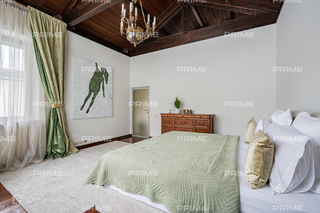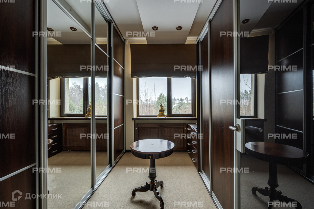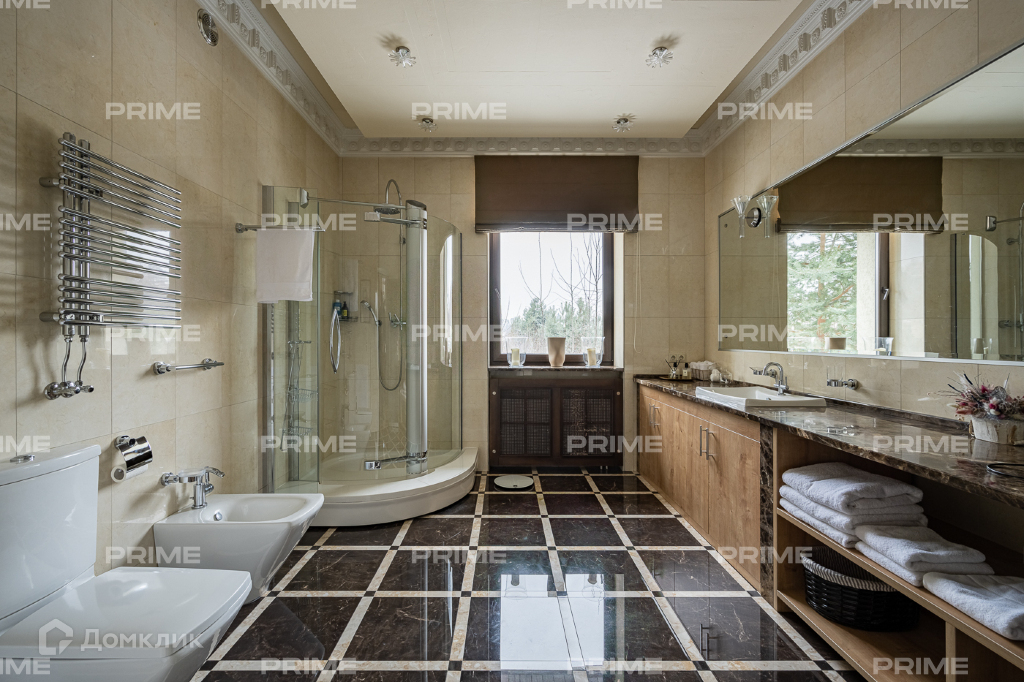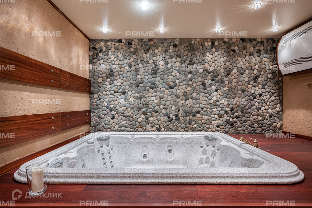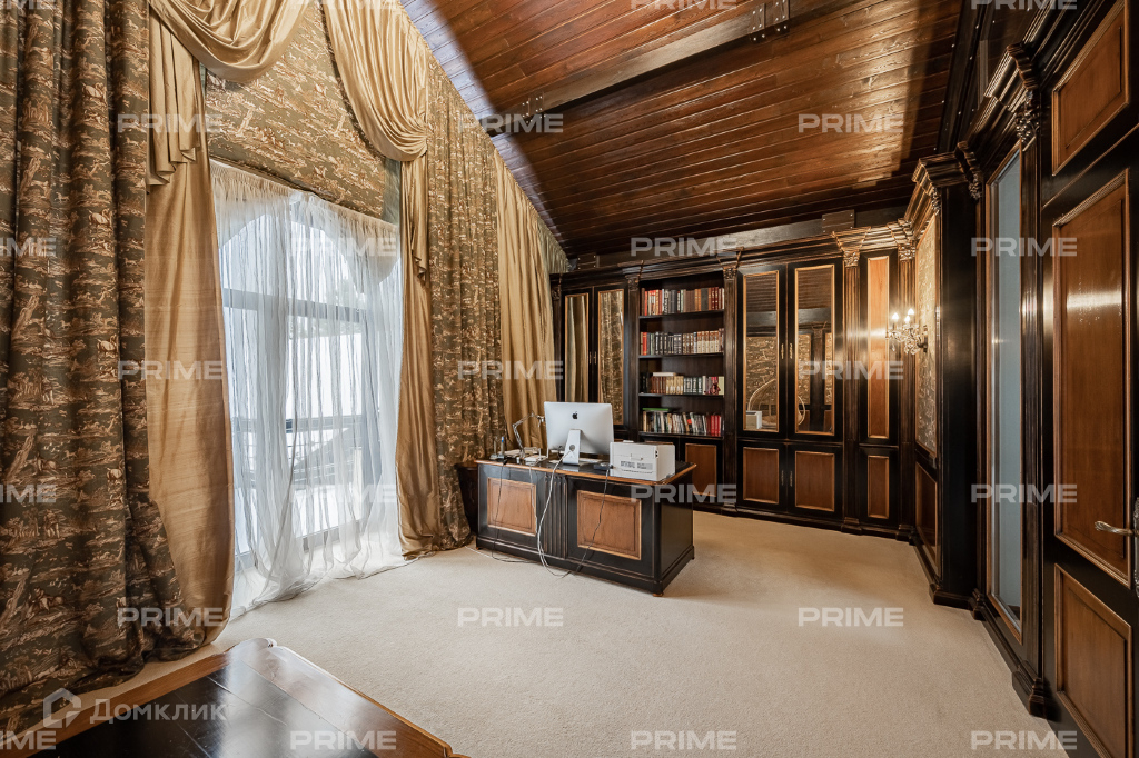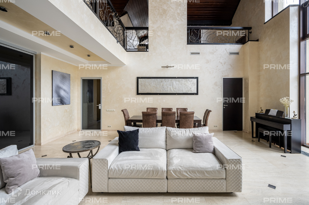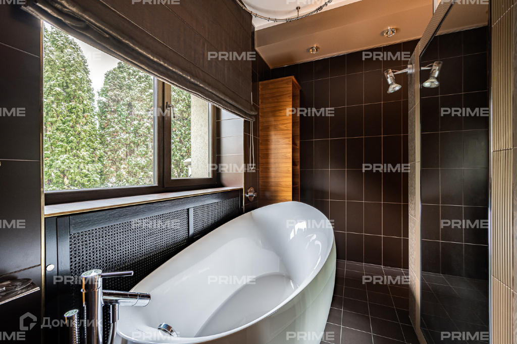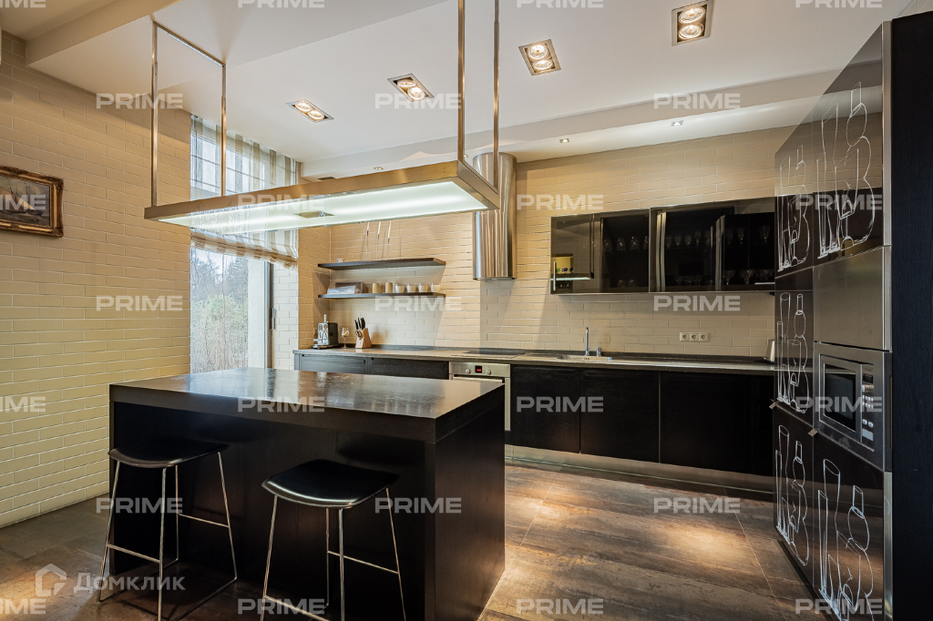 Внутренняя дизайнерская отделка выполнена с использованием премиальных и натуральных материалов. Пол первого выложен дубовым паркетом светло-серых оттенков в гостинной и в темных тонах в кухне-столовой. Во всех комнатах установлена качественная мебель европейских производителей. Благодаря панорамному остеклению и второму свету пространства наполнены естественным светом, даже в пасмурную погоду. Внутренний двор огорожен, тут вымощены дорожки, растут молодые сосны, а всю эту пейзажную красоту дополняют декоративные кустарники. В доме есть все для роскошной жизни за городом, вы можете устроить вечер турнира по бильярду, провести relax-день в СПА-зоне или устроить барбекю с друзьями во дворе.