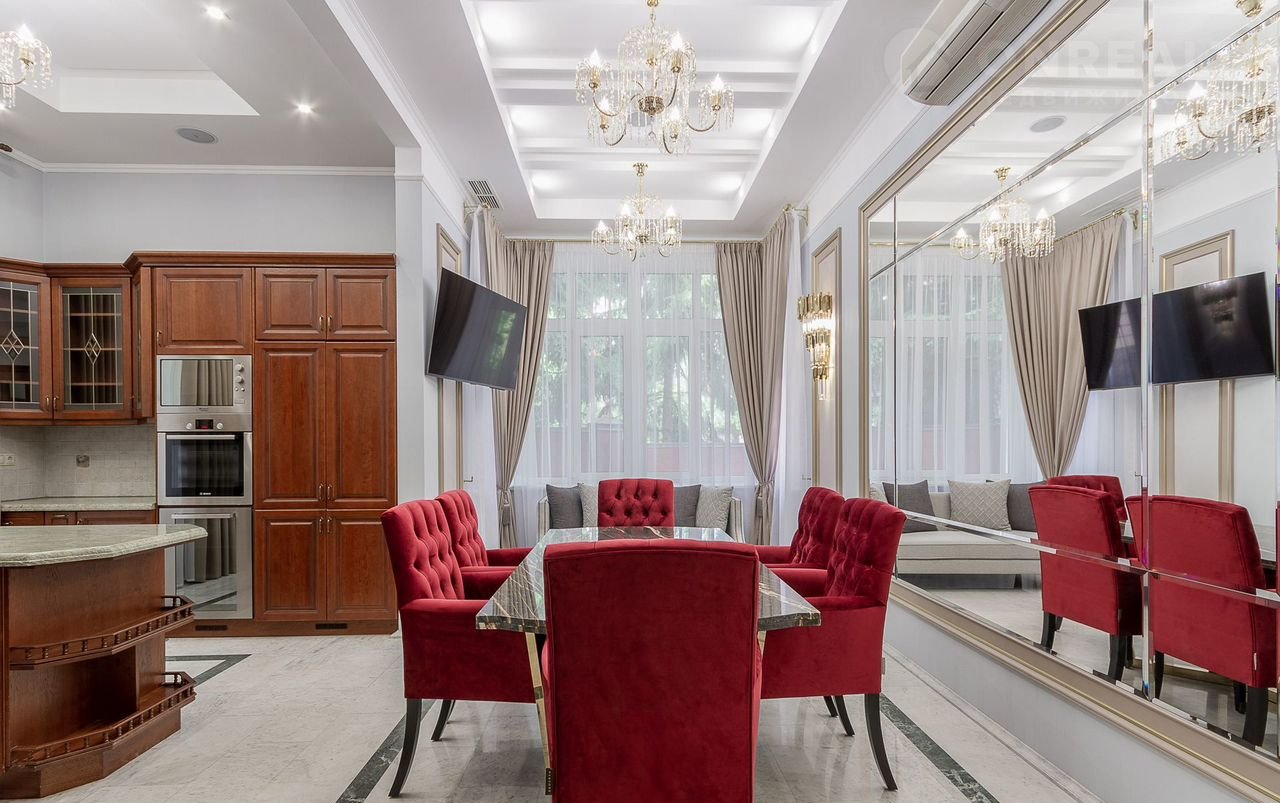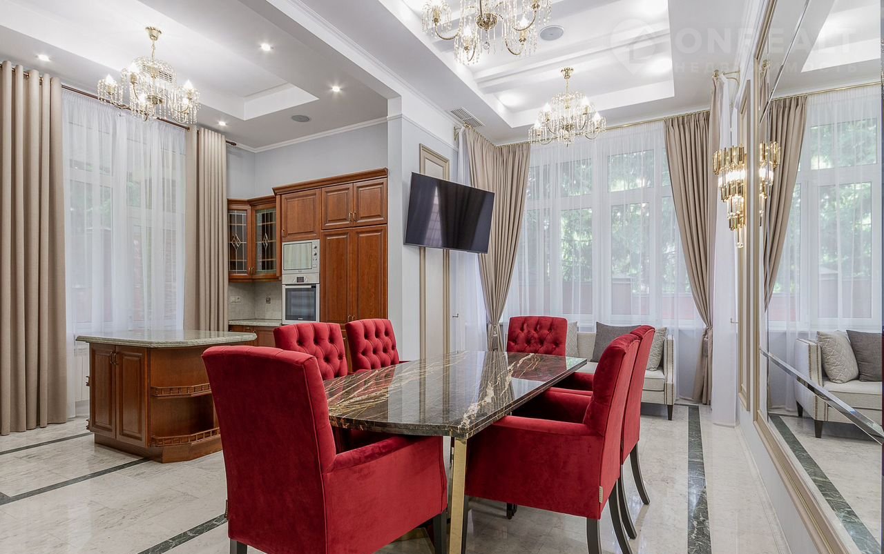Полностью оборудована кухня: встроенные холодильник, микроволновка, духовой шкаф, винный шкаф. Покрытие поверхностей натуральный камень. Газ магистральный, электричество 20 кВт, канализация и водоснабжение центральные. Высокоскоростной интернет. Подключены два телефонных номера МГТС, объединенные через цифровую АТС, которая обеспечивает все функции: переадресация вызова на городские и мобильные телефоны, внутренняя связь, в том числе с гаражом.