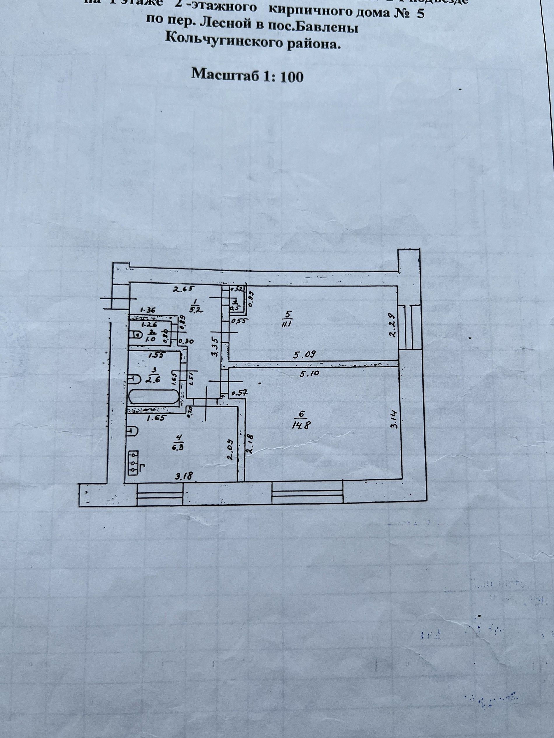 2-комнатная квартира, 41.5 м2, этаж 1 / 2, на продажу в поселке Бавлены, Лесной переулок, 5