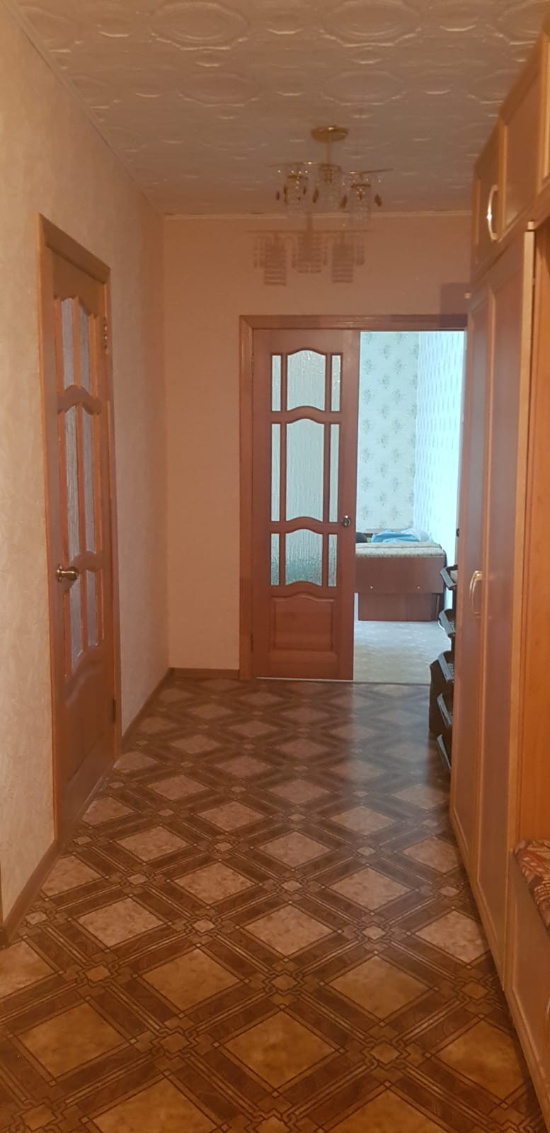 Комнаты изолированные. Кухня удобной формы . Потолки высокие .Напольное покрытие линолеум.  Сан. узелы раздельные . Счётчики на воду. Просторный коридор 13,4 квадратных метра . Входная дверь тёплая. Телевидение.