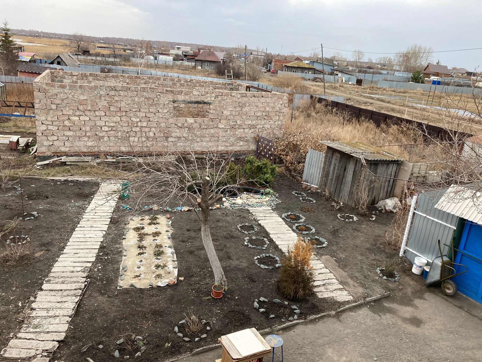 участок огорожен забором из профнастила,
