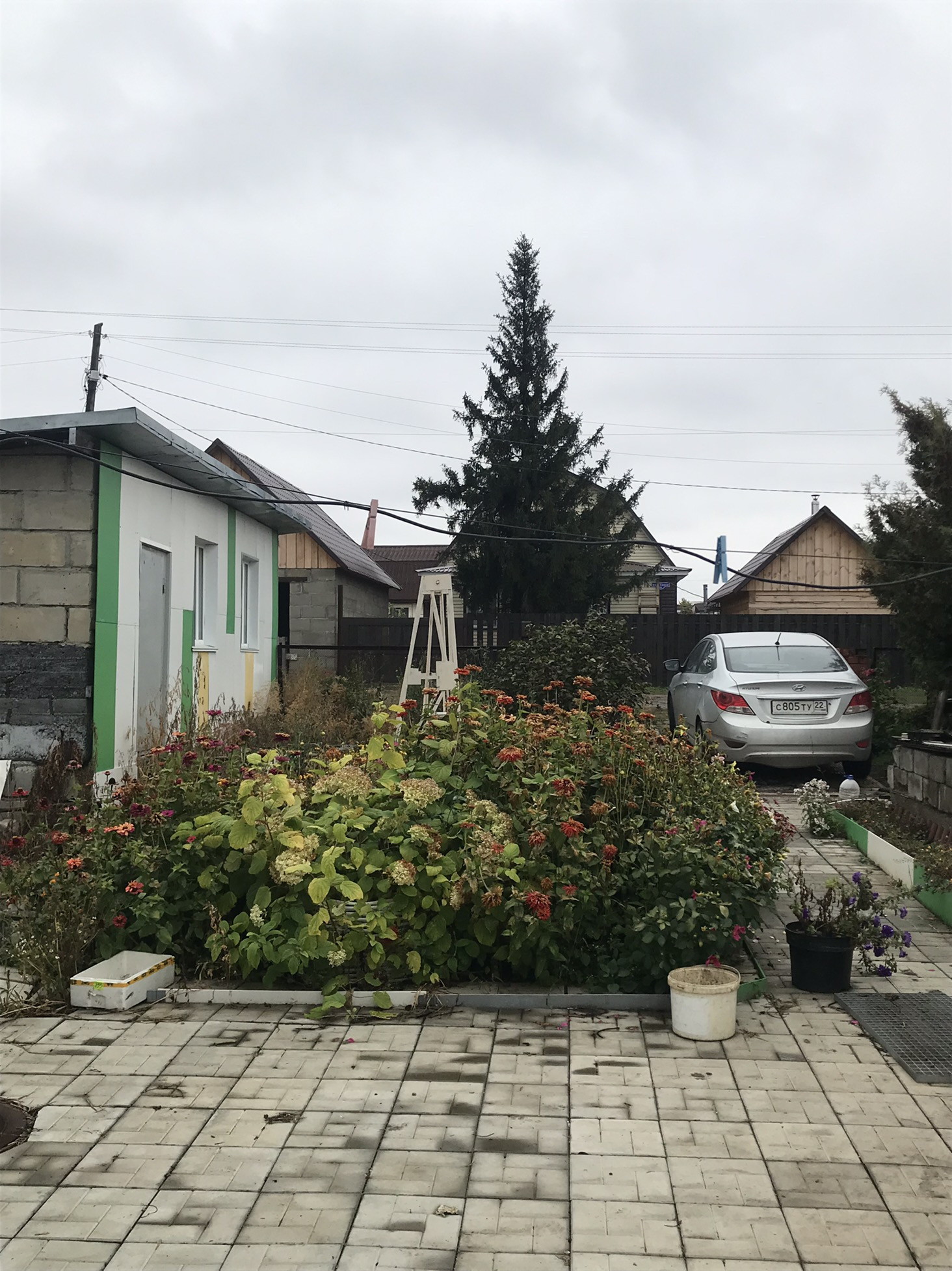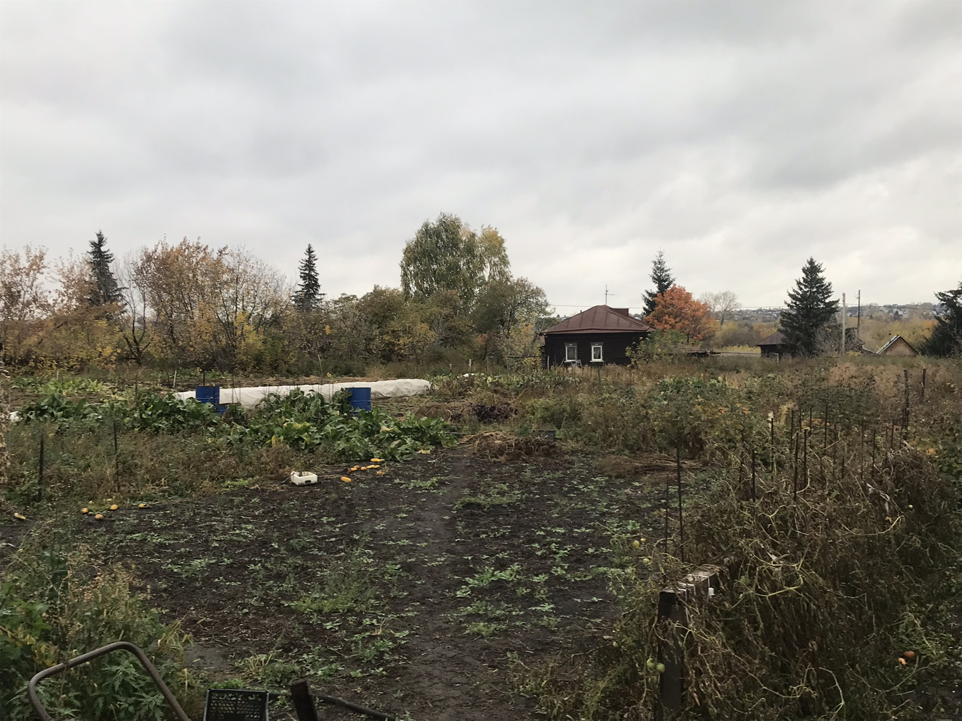Из построек: баня брус с мансардой, гараж из газобетона, обшито всё сайдингом, теплица.