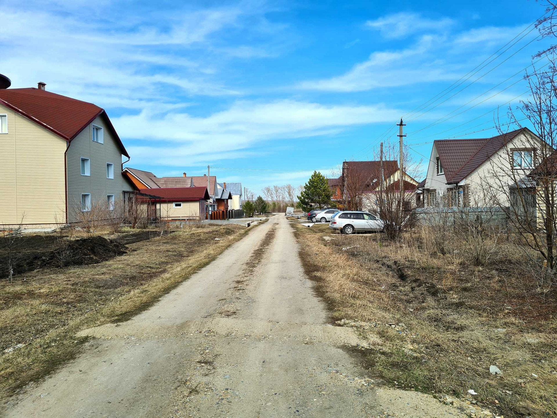 Отсыпанные дороги, застроенная жилая улица. В посёлке есть школа, магазины, остановка транспорта.