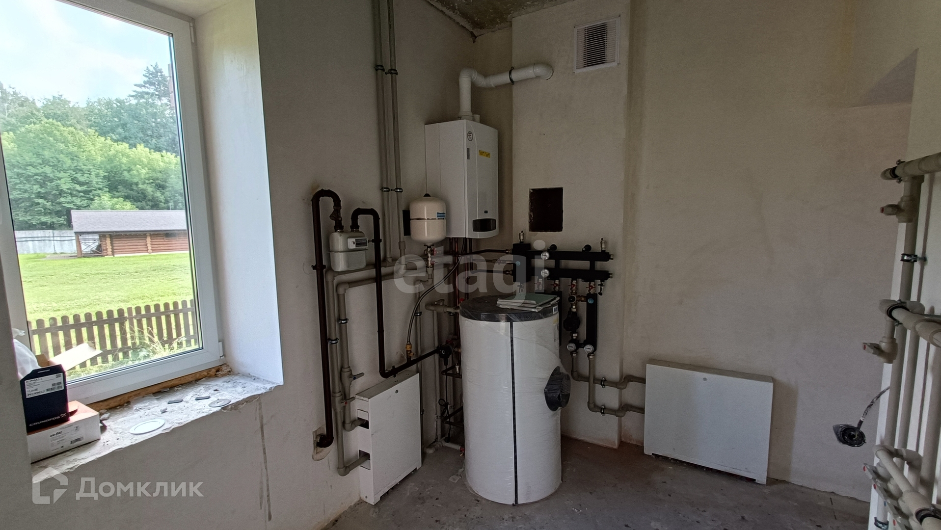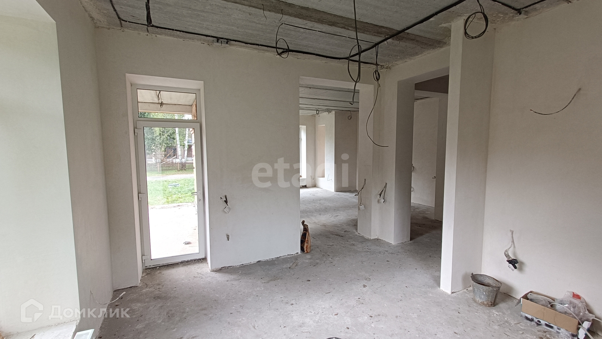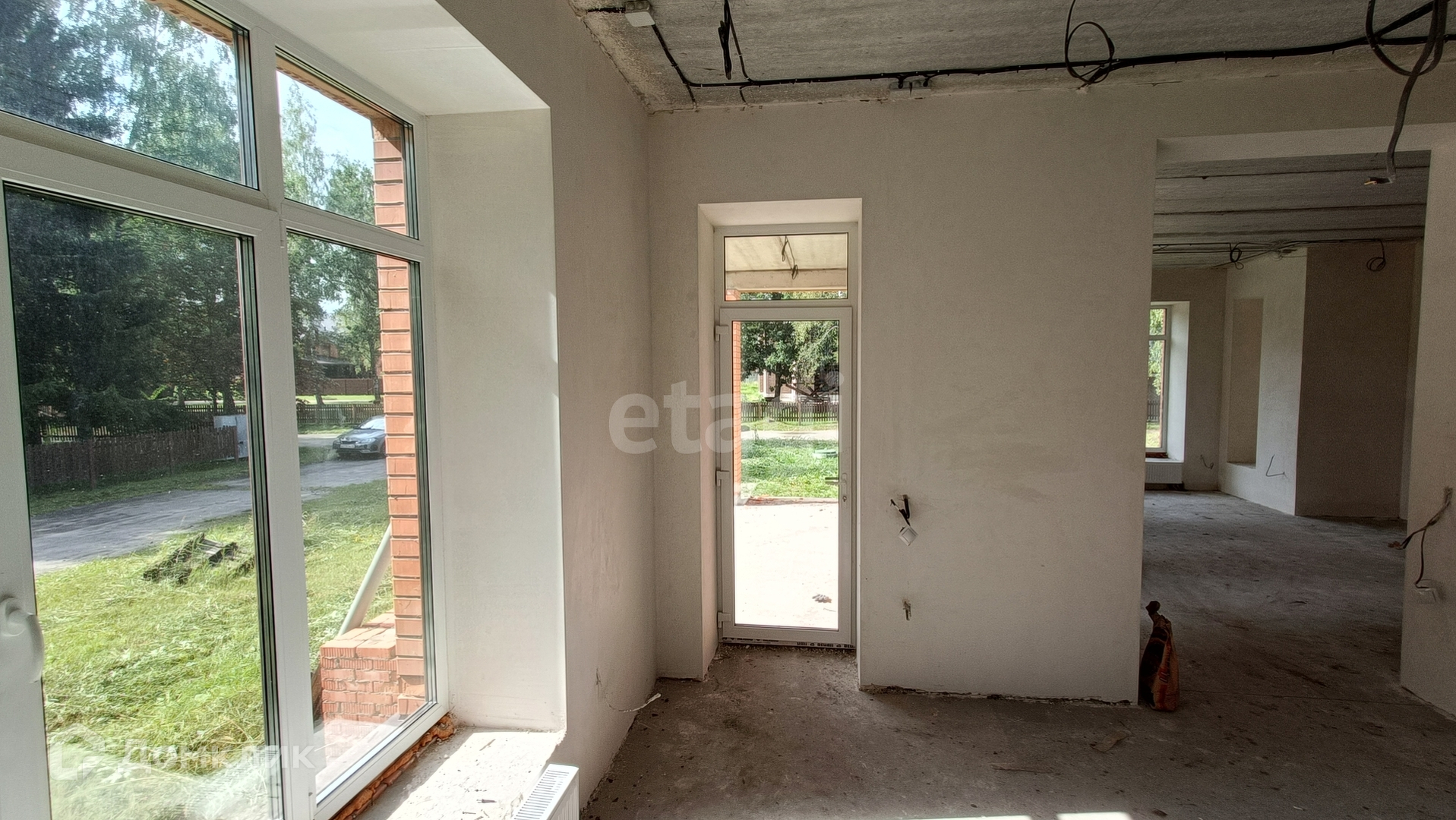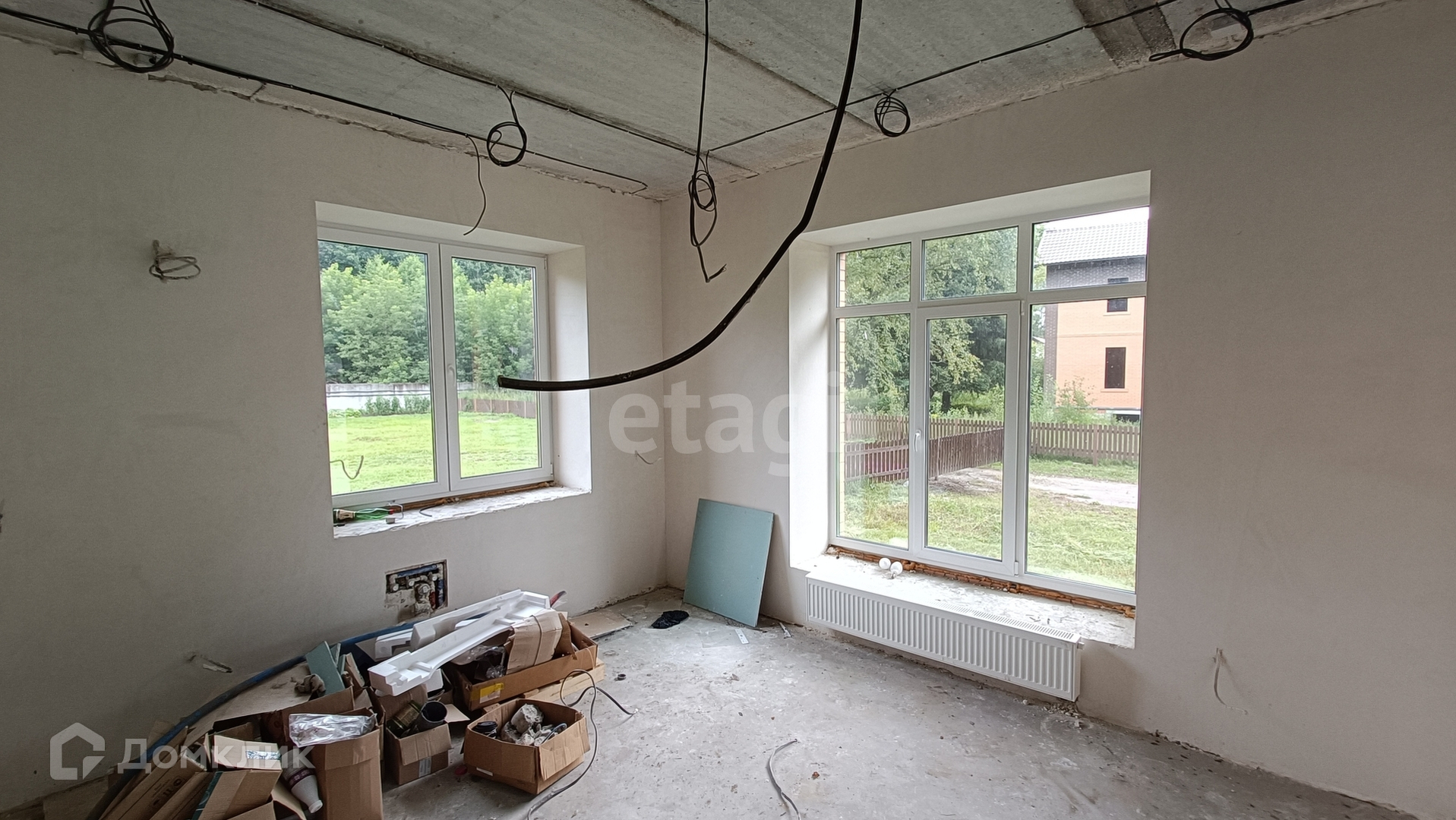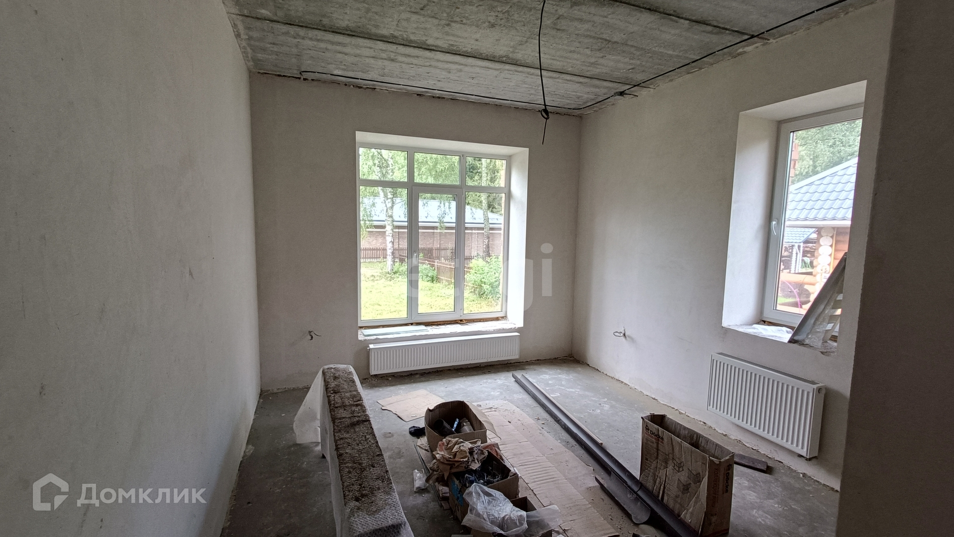 Все черновые работы выполнены и коммуникации подведены, 2 артезианские скважины. Частичная отделка White Box, установлены окна Rehau, разведена электрика, на первом этаже тёплый пол.