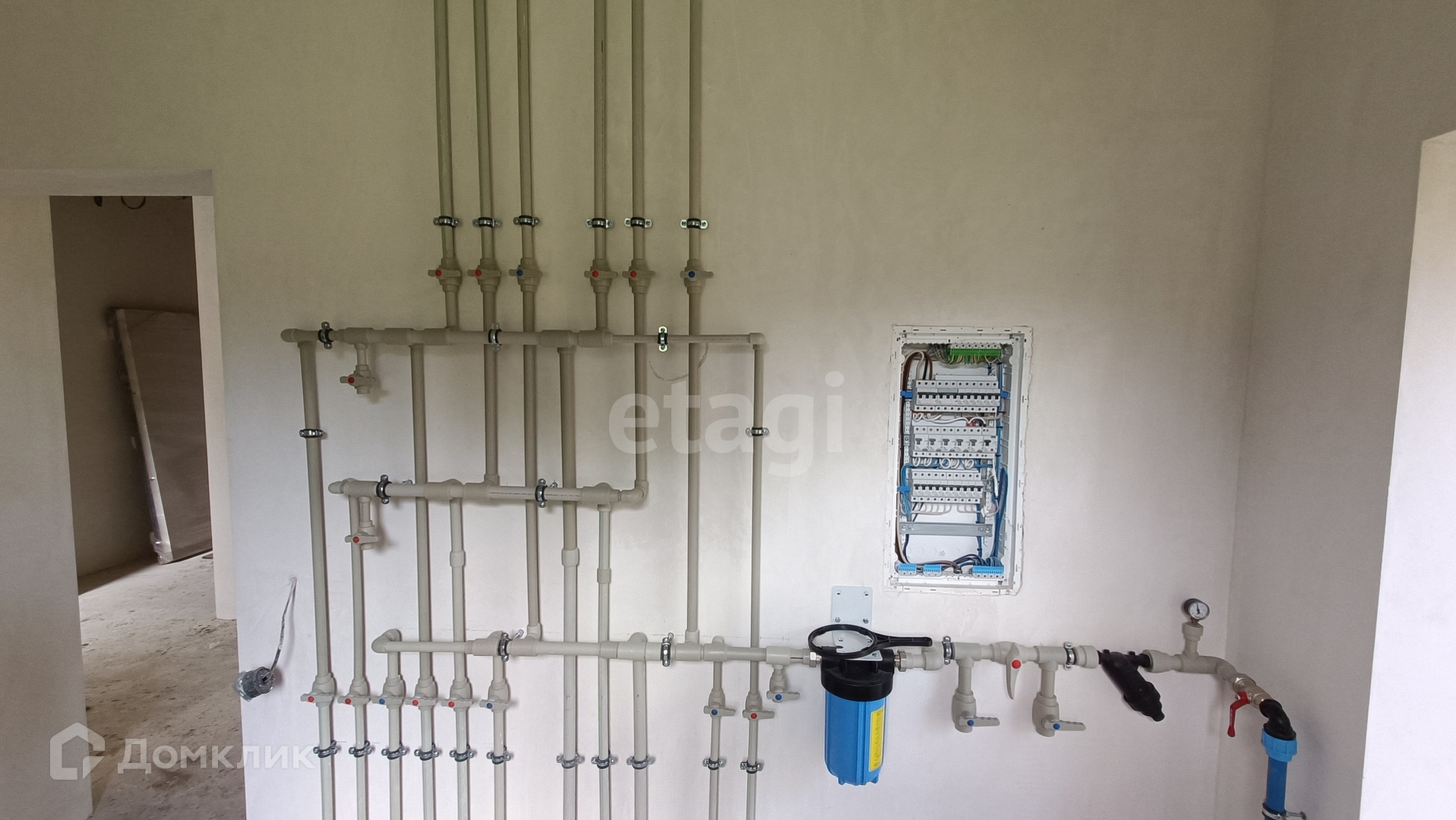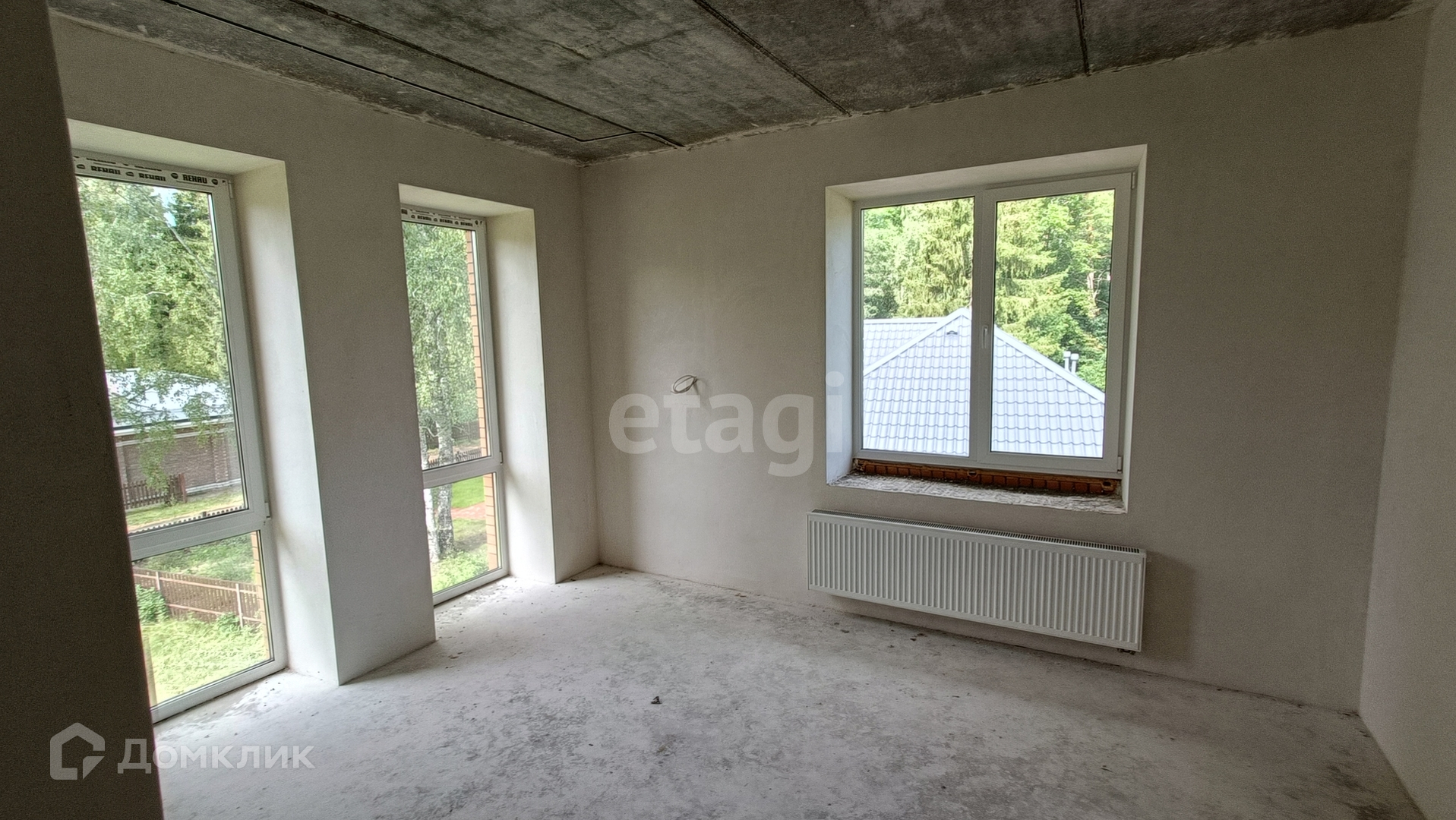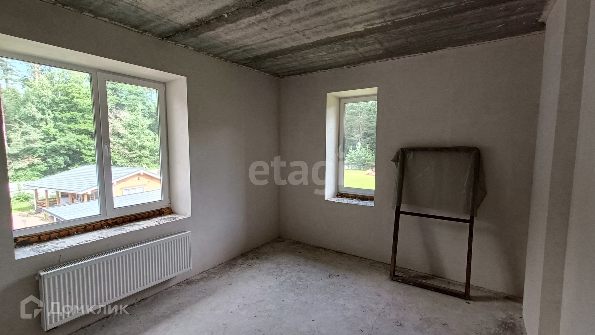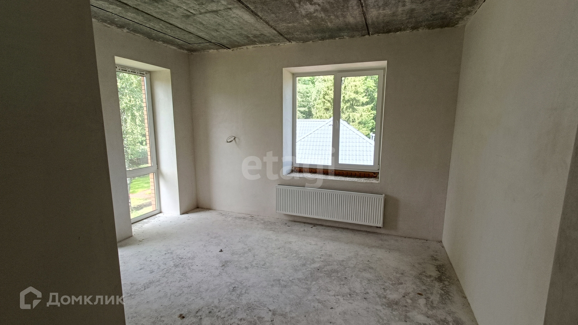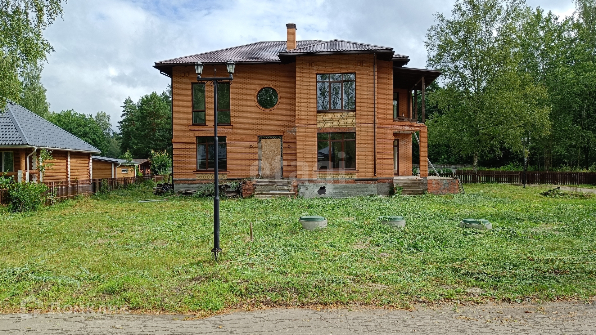 Все черновые работы выполнены и коммуникации подведены, 2 артезианские скважины. Частичная отделка White Box, установлены окна Rehau, разведена электрика, на первом этаже тёплый пол.