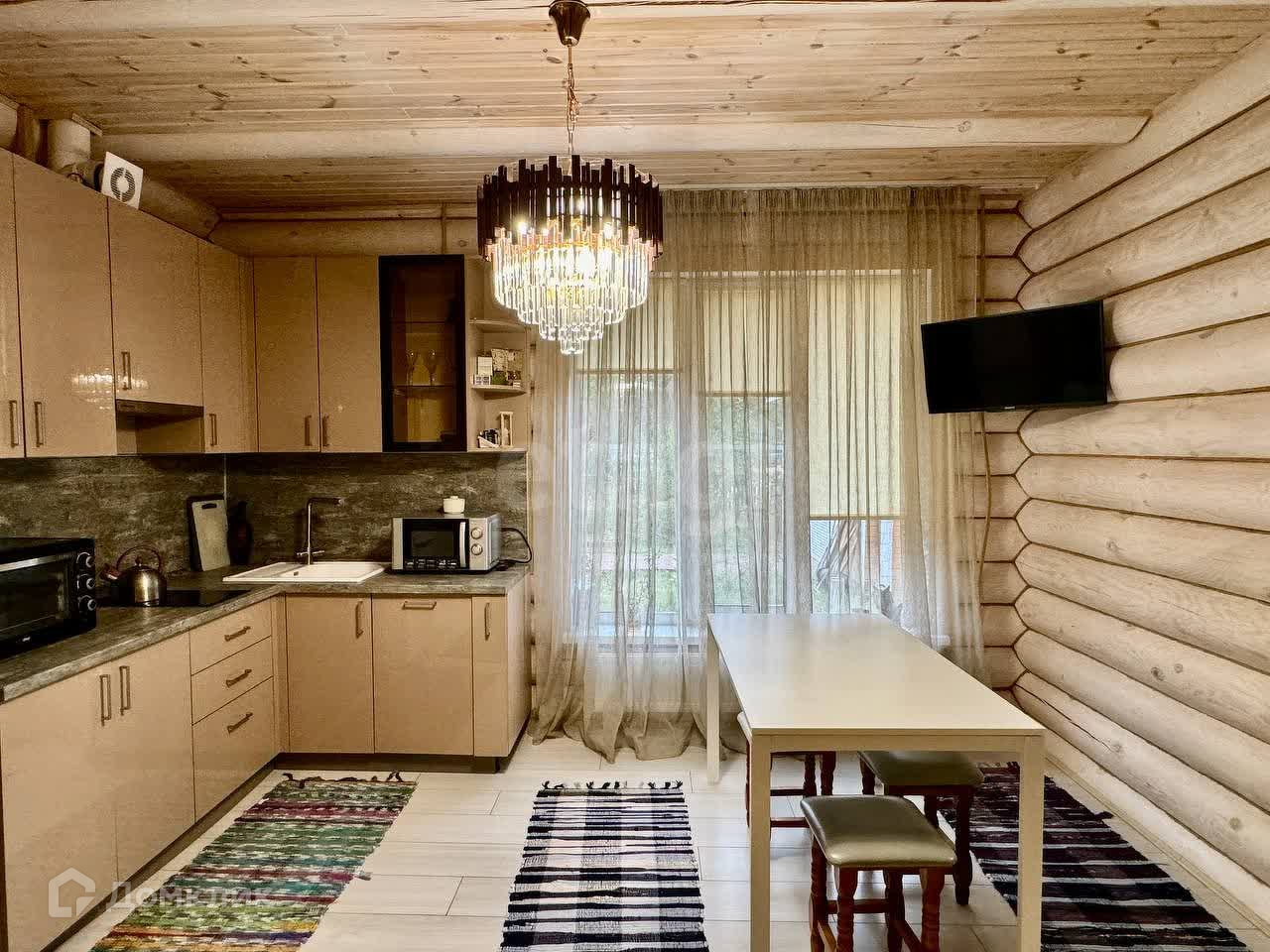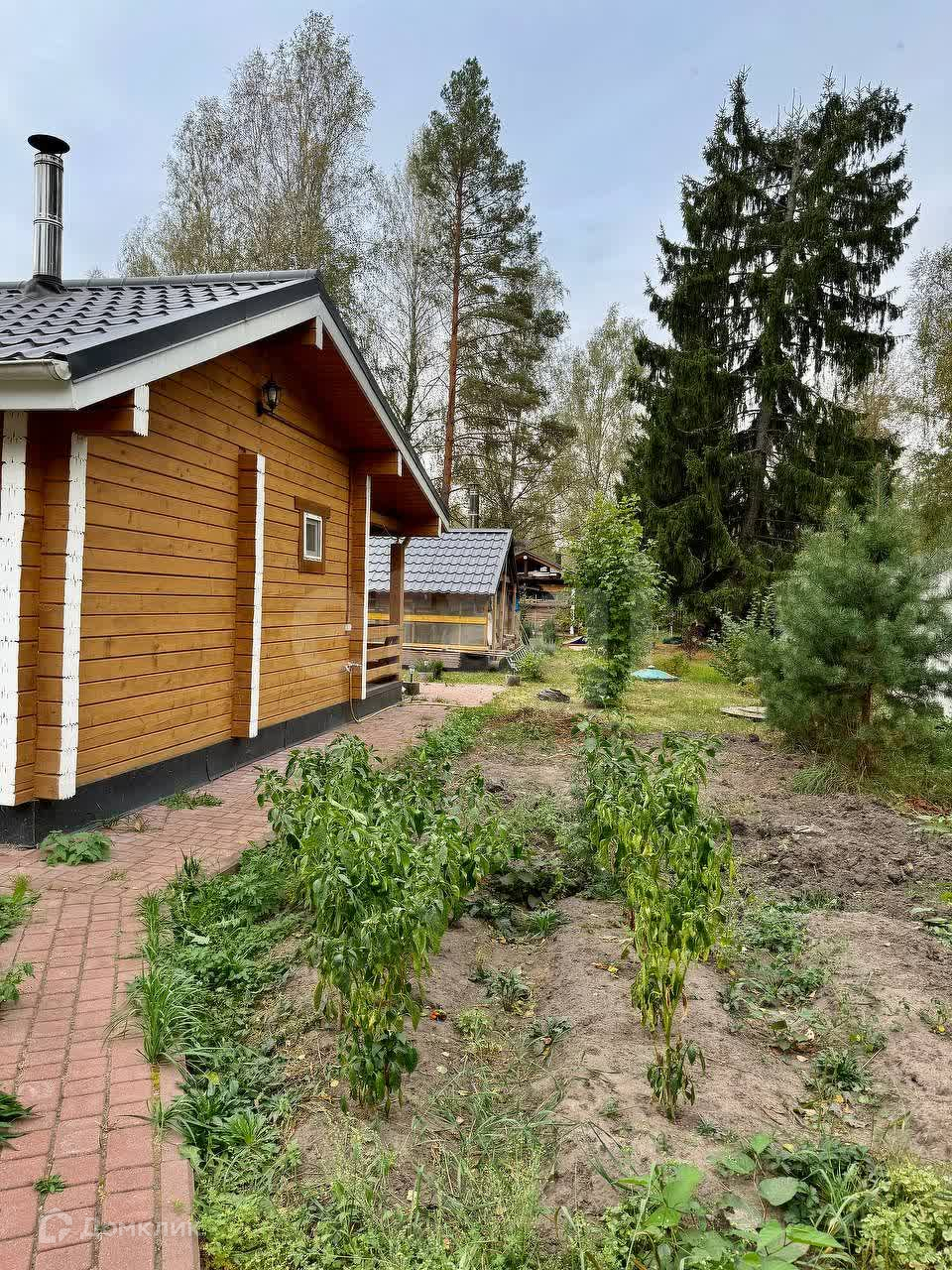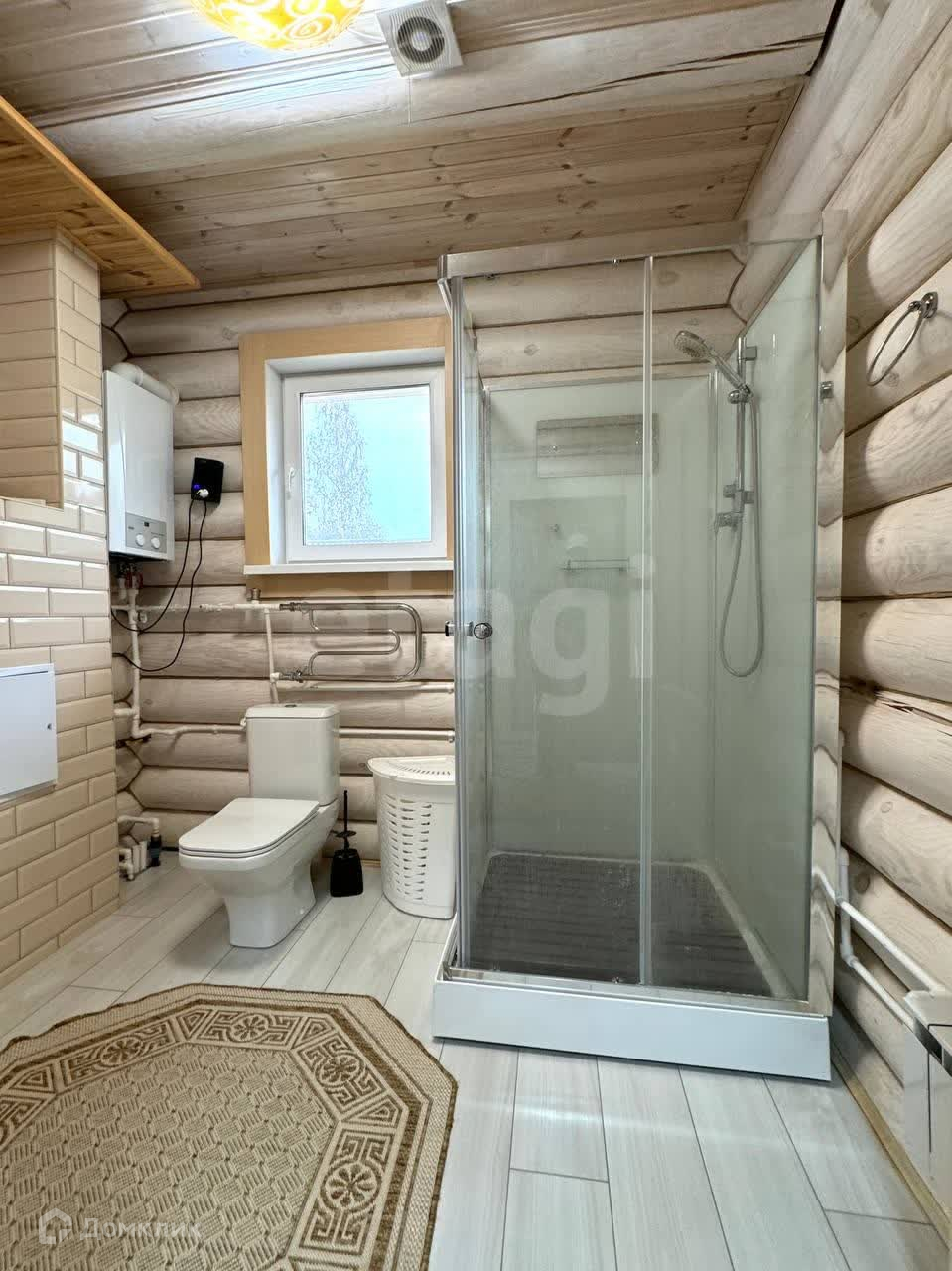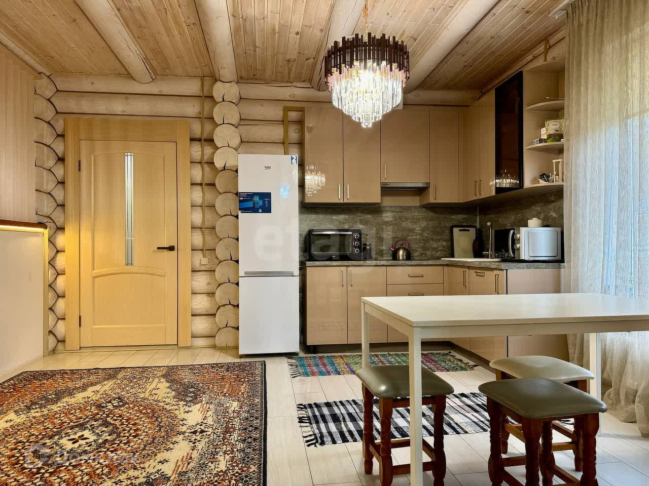 Материал стен дома - бревно, крыша - металлочерепица, центральный водопровод, газ, канализация - автономная станция био очистки.
