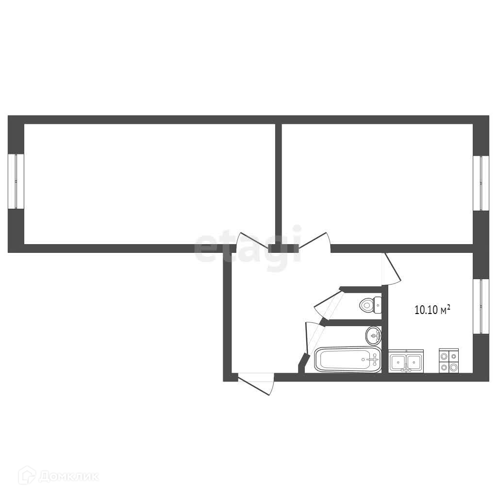 Общая площадь 44 кв.м, просторная кухня.