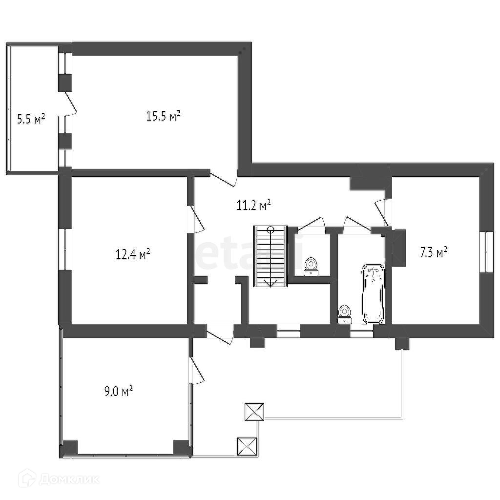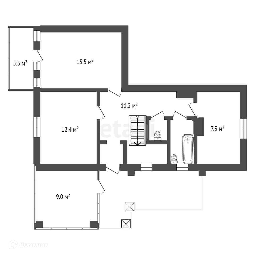 Две теплые комнаты второго этажа можно увеличить, изменив конструктив крыши или убрав перегородки комнат.