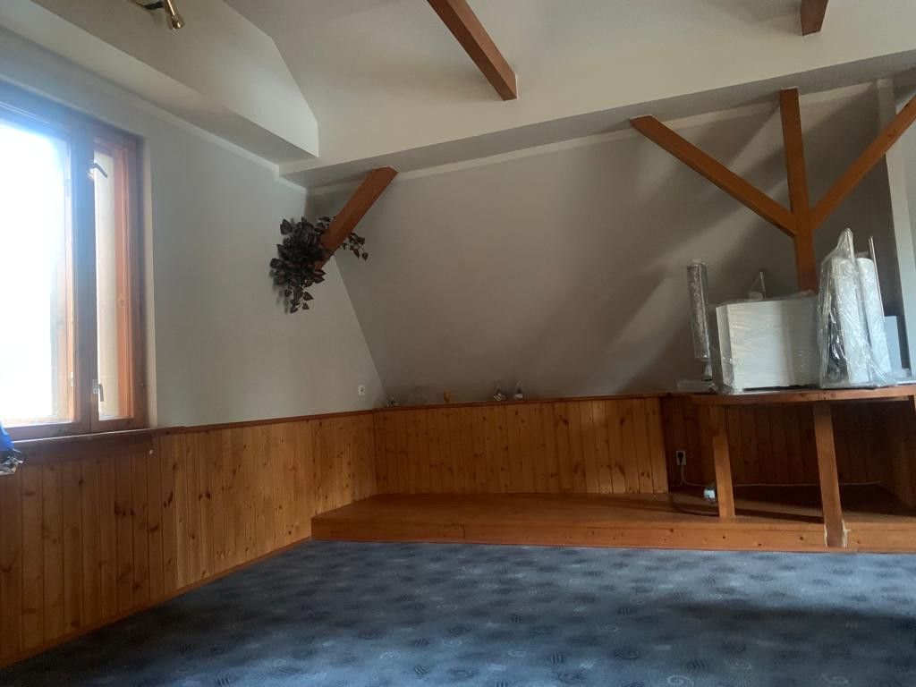 Второй этаж: одно помещение, не требует ремонта и отделки. Был переделан в 2014-2015 годах с хорошим утеплением потолка и стен, гипрок разновысотный на качественном металлокаркасе, с покраской. Новые деревянные оконные блоки по спецзаказу.