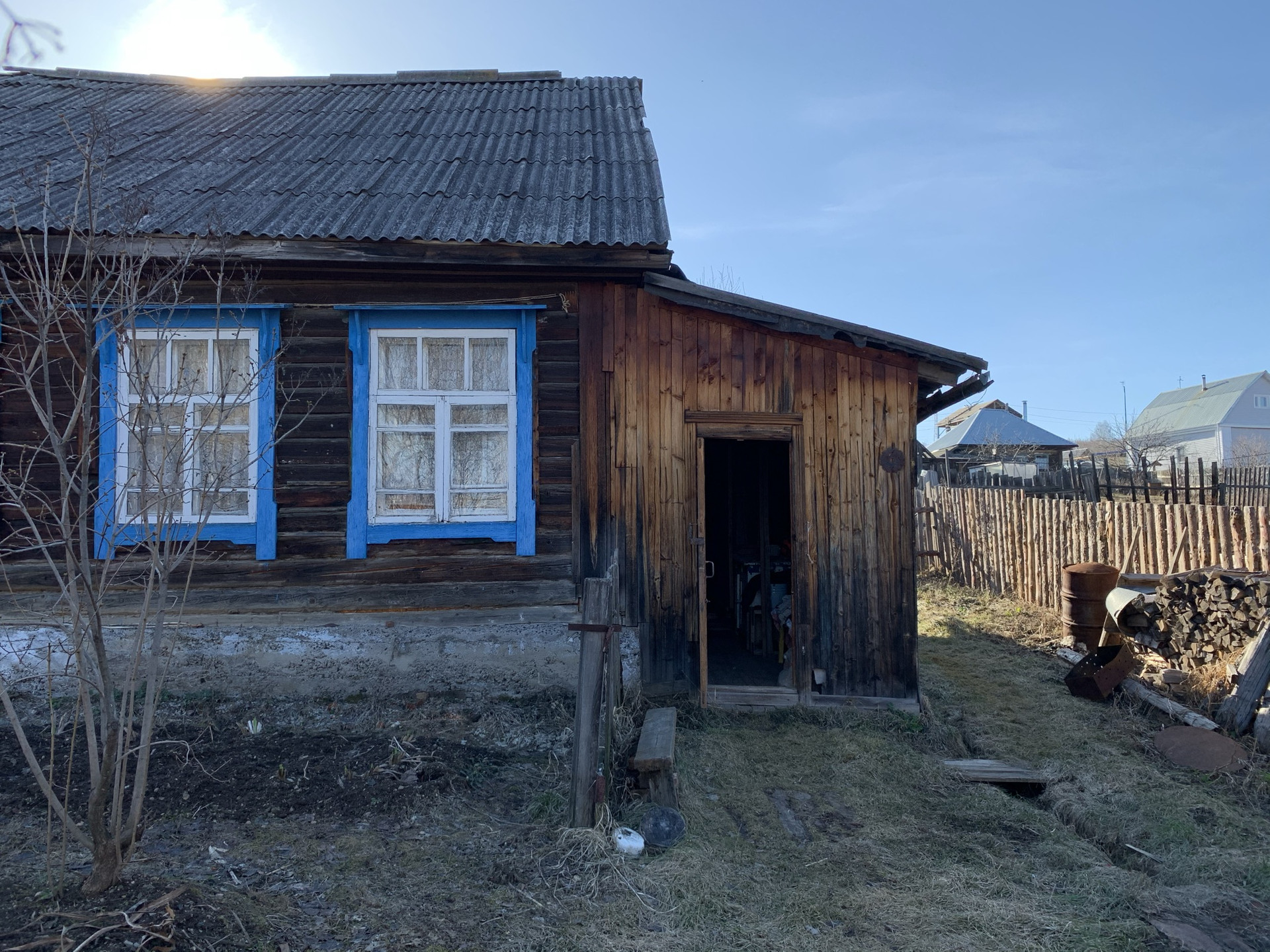 Квартира с русской печкой в двухквартирном доме (таунхаус), соседи за стенкой порядочные, тихие, бабушка и дедушка. Во дворе дома, есть колодец, на участке располагается теплица, земля не простаивает, засаживается каждый год.