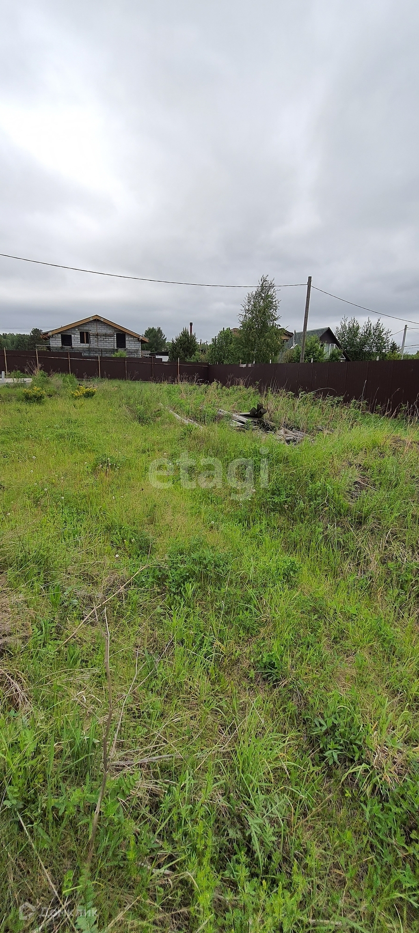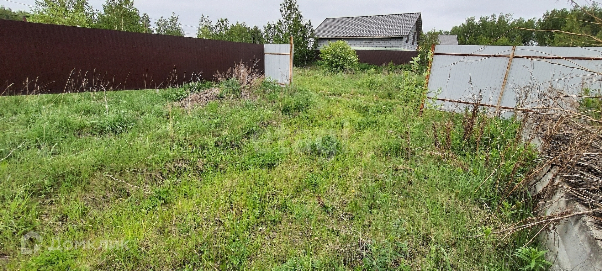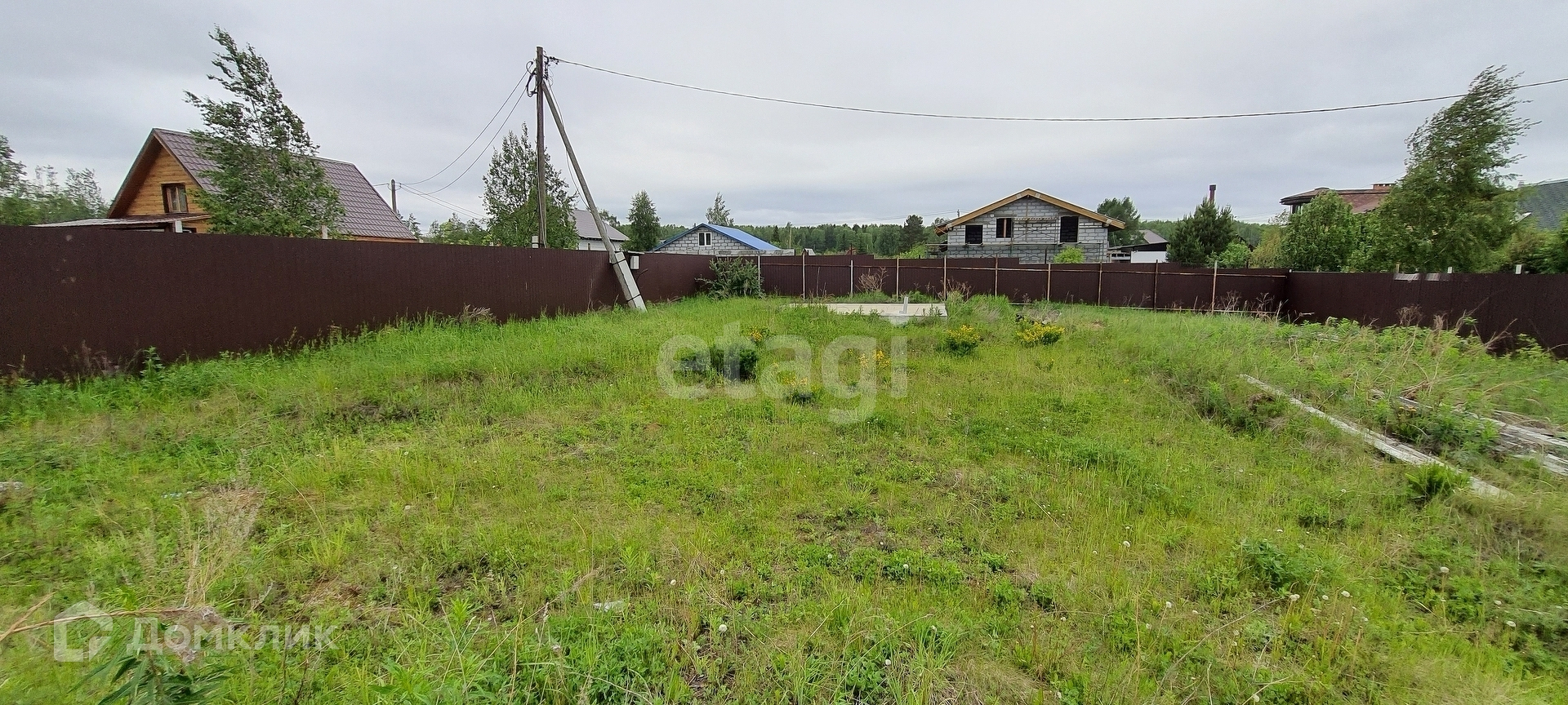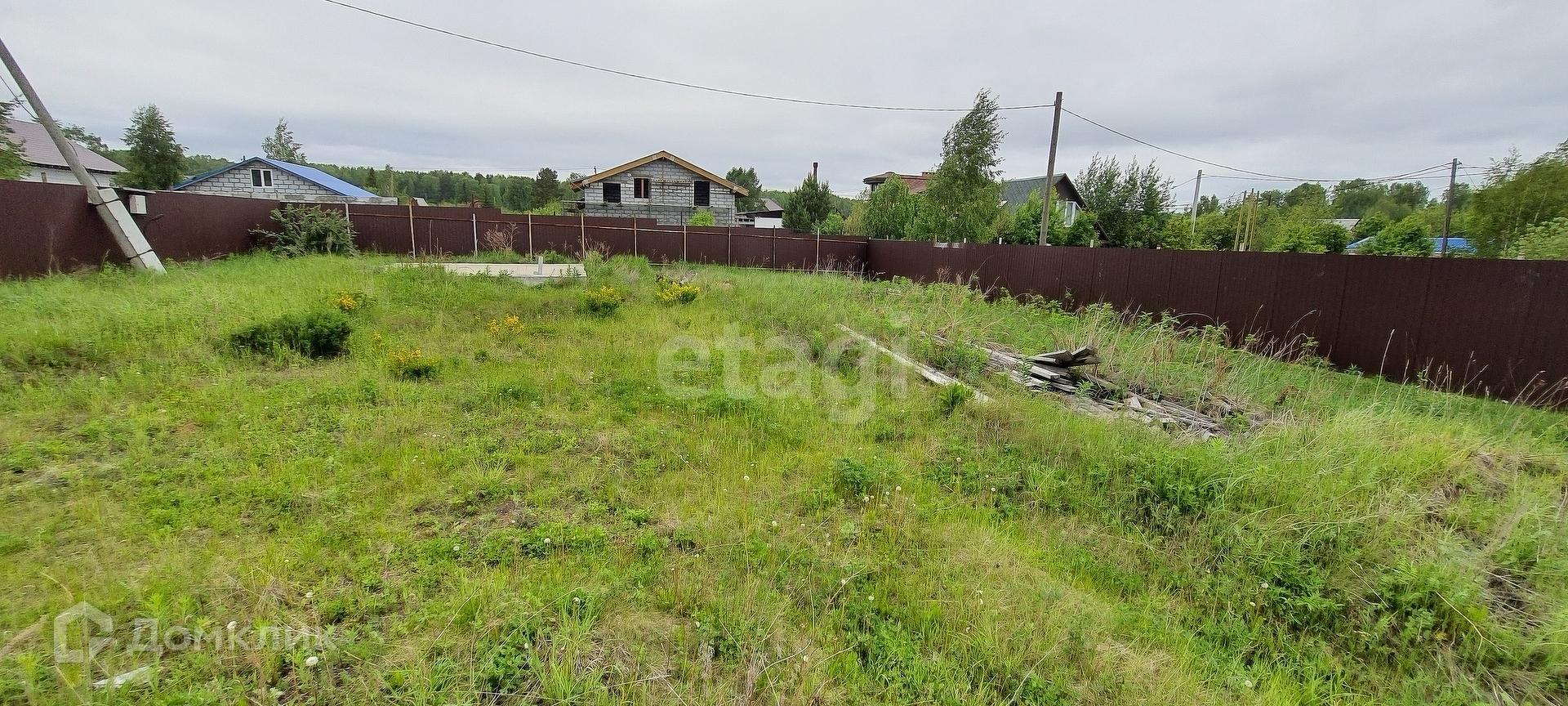 Площадь участка 8,4 сотки. На участке залито два фундамента 6х6 и 10х10 сделан забор и электричество. Поселок застроен, вокруг соседи живут круглый год.