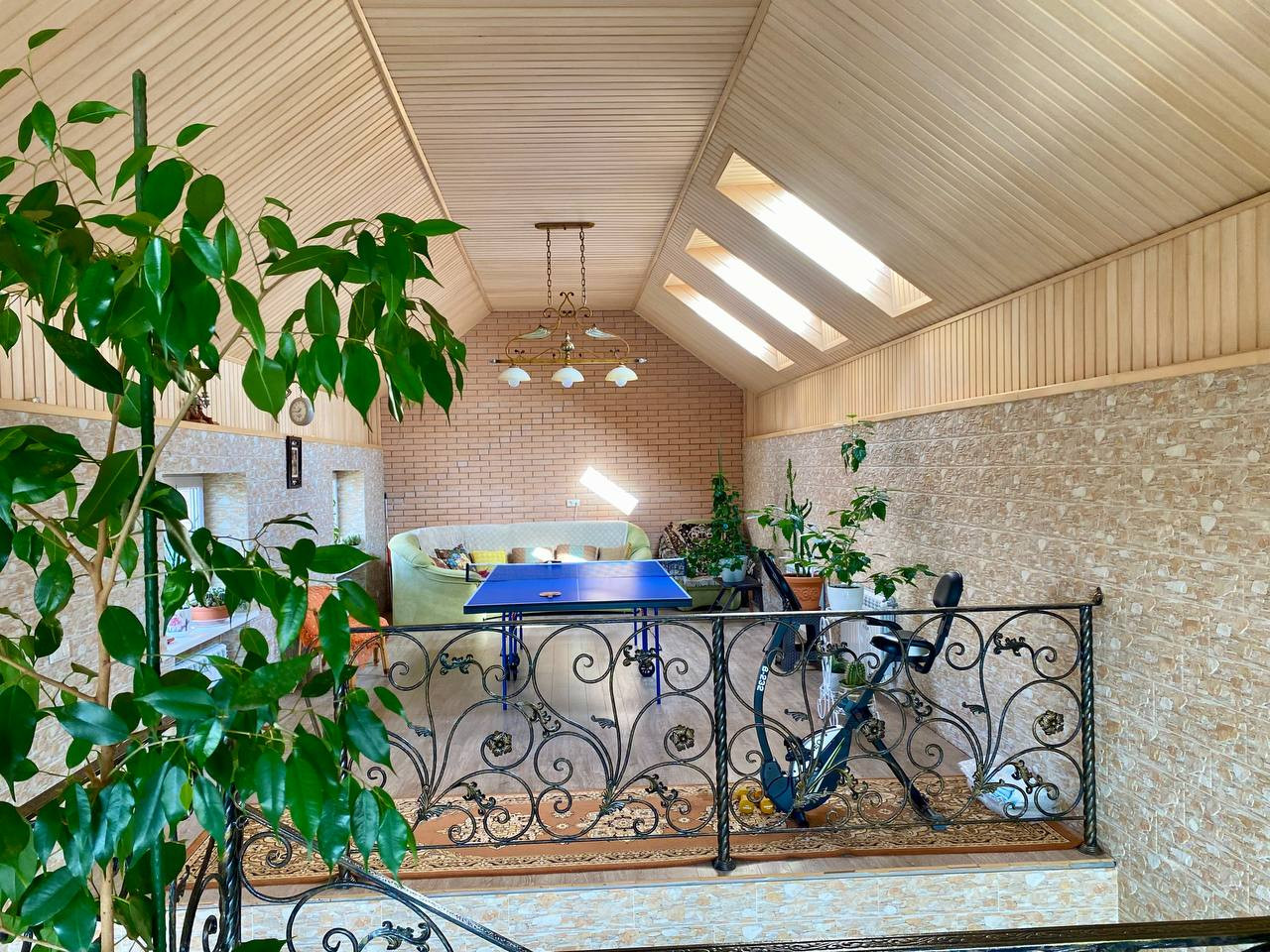 На 1м этаже расположились каминный зал с действующим камином и потолками 6.74 м., величественная кухня-гостиная , летняя кухня с выходом во двор, терраса, бассейн 5х3 м с переходом в зимний сад и комнату для спорта на 2м этаже!