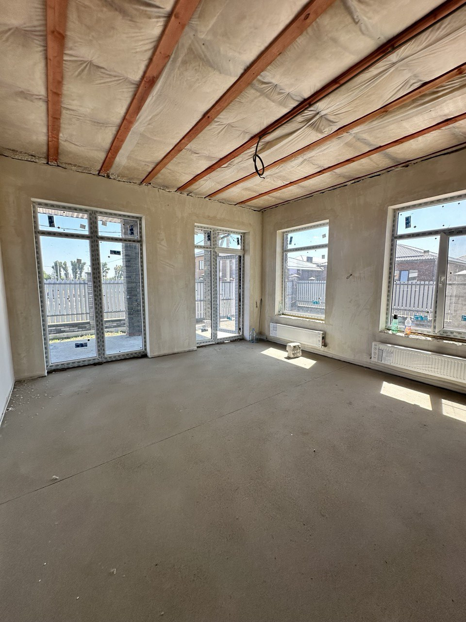 Площадь дома — 90 м², земельный участок — 4 соток. Дом выполнен в предчистовой отделке: качественная стяжка пола, штукатурка стен, проведена электропроводка и сантехника