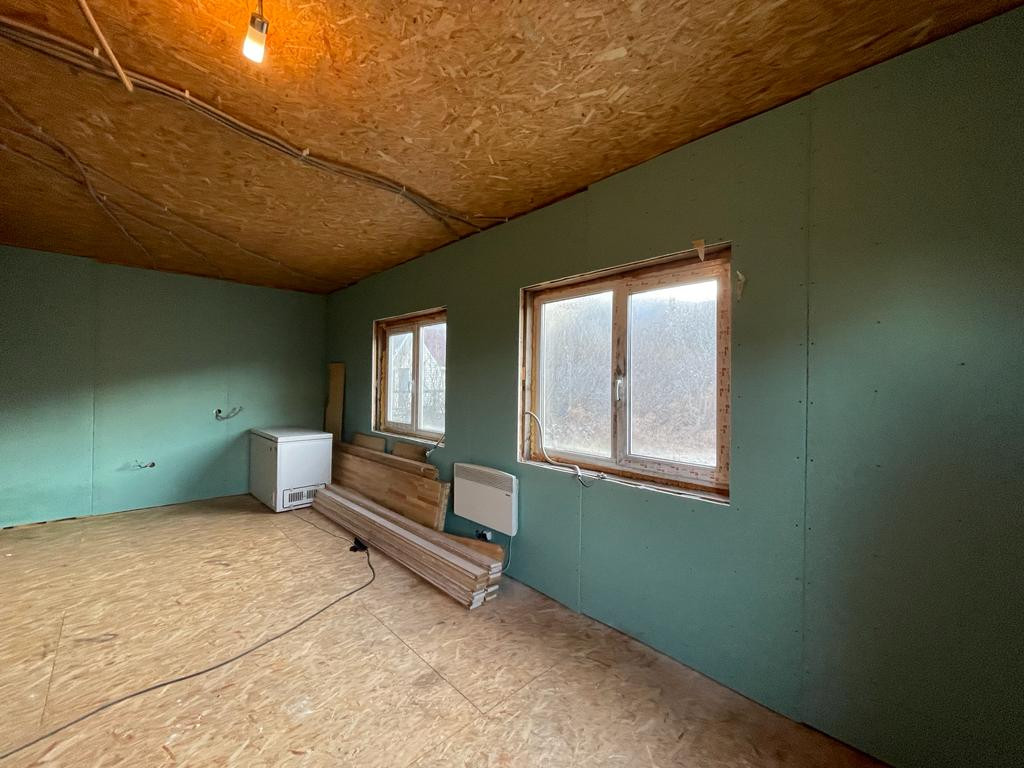 Построен по каркасной технологии,  утеплитель пенополеуретан, крыша металлочерепица
