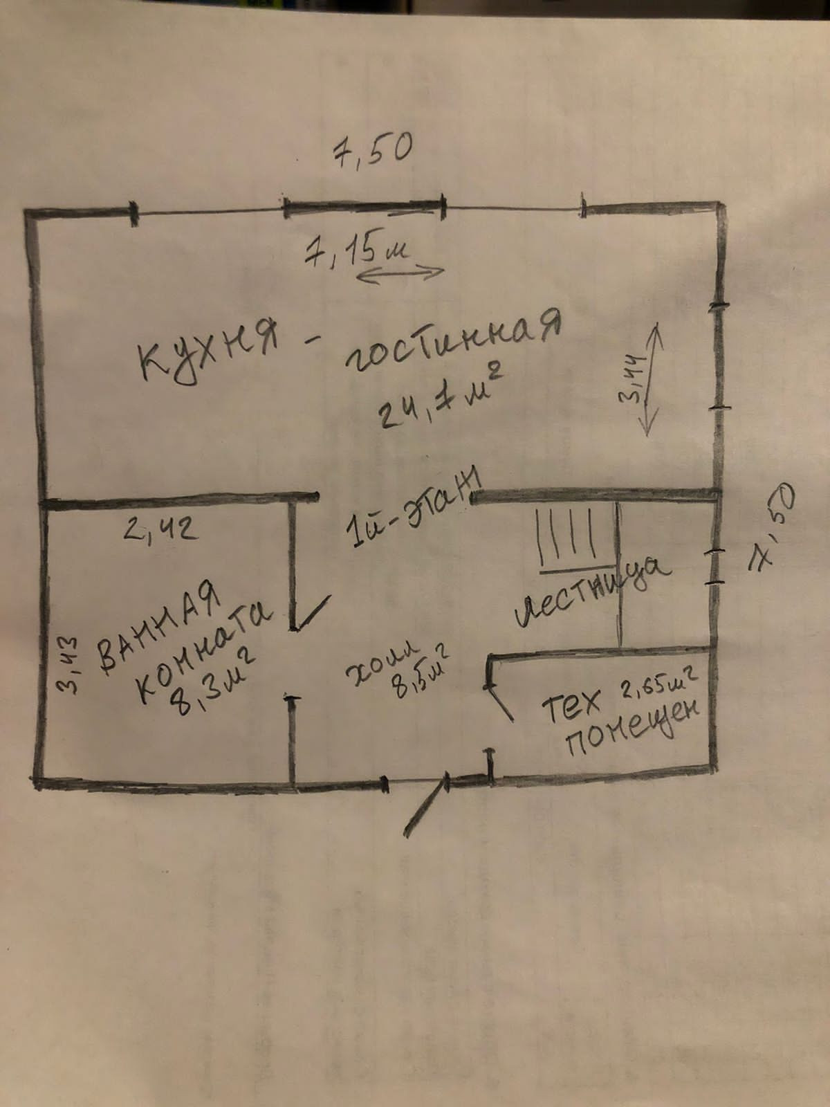 1 этаж кухня-гостиная, санузел,  бойлерная