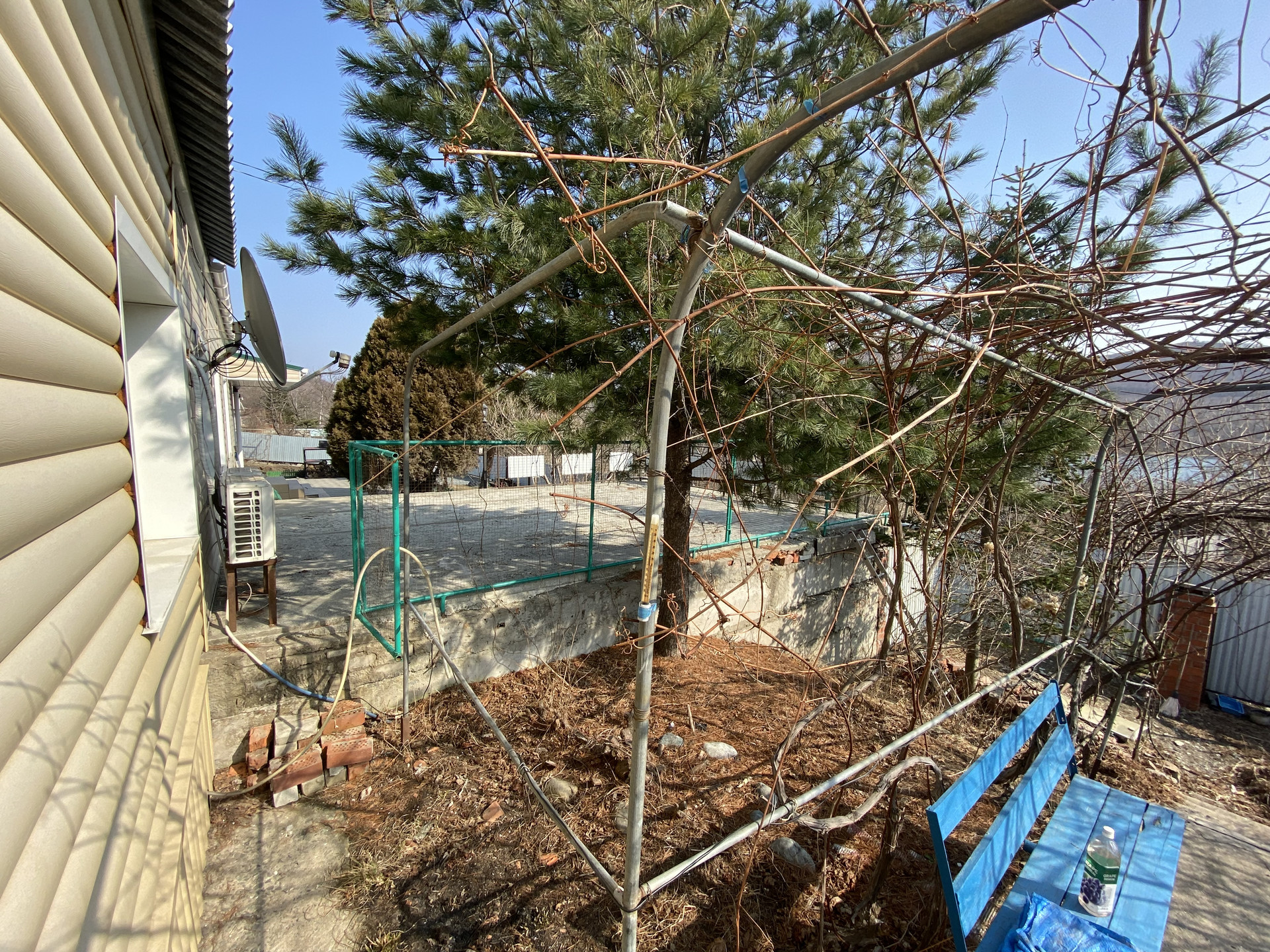 Построен в 1993 году из бетонных блоков, плиты перекрытия , пристройка из кирпича, оформлен в собственность.