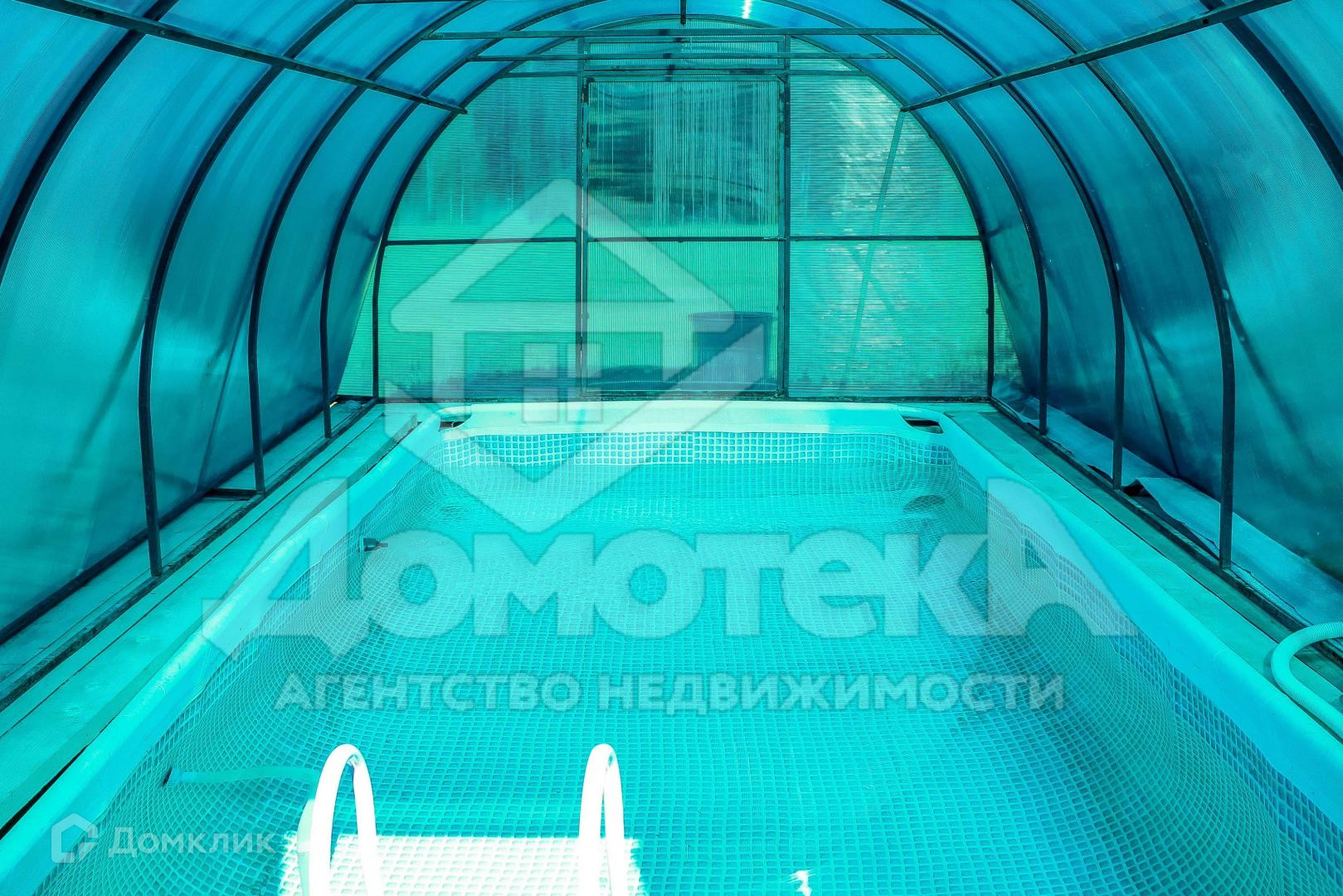 На участке рядом с баней хороший, большой крытый бассейн с фильтрацией.